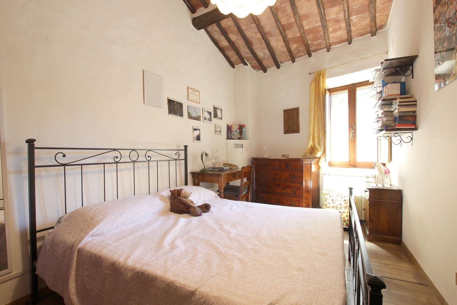 Nei pressi di ponte allo spino, comune di sovicille, percorrendo 900 metri di strada bianca, vendesi porzione di casale terra tetto di 120 mq su due livelli con 22 mq di terrazzo abitabile oltre ad ampia cantina di 30 mq e 1200 mq di terreno/oliveta collocati a 200 metri dall abitazione. ingresso autonomo tramite il terrazzo pranzabile, cucina abitabile con caminetto, ripostiglio ed ampio salone con soffitto a volte e termo camino; scale di accesso al piano primo tutto con travi a vita diviso in tre camere (due matrimoniali ed una singola) e doppi servizi. appartamento facente parte di casale diviso in tre unità-, ristrutturato nei primi anni 2000, rifatto anche il tetto, ad oggi in condizioni molto buone, magari da rinnovare i due bagni e poco pià¹. utenze autonome, nessuna spesa condominiale per informazioni classe energetica: non dichiarata
