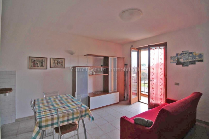 In zona residenziale di recente realizzazione, si propone la vendita di appartamento di mq. 55, completamente arredato ed accessoriato, posto al piano secondo con ingresso autonomo dal piano terreno mediante scala privata, corredato di ampio garage di mq. 30 e posto auto privato. L'abitazione si compone internamente di soggiorno-pranzo con angolo cottura, camera matrimoniale, bagno finestrato con doccia e due terrazze panoramiche per complessivi mq.10. La proprietà dispone di riscaldamento autonomo a metano e si trova in ottimo stato di manutenzione generale. Contesto molto tranquillo e vicino a tutti i servizi. Nessuna spesa di gestione condominiale. Subito disponibile. L'agenzia dispone direttamente delle chiavi per le visite.