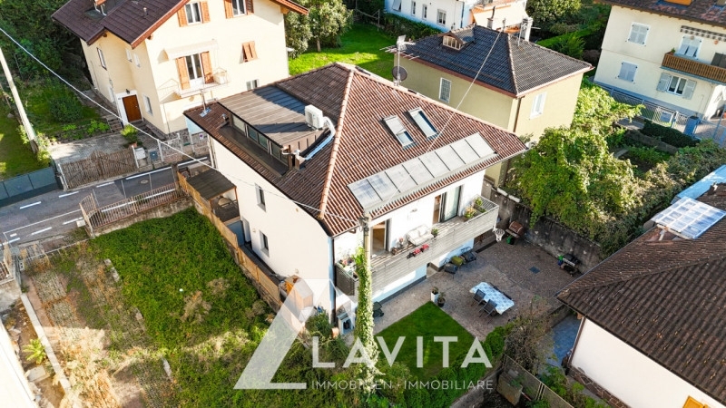 Laives; in posizione tranquilla e ben collegata, proponiamo in vendita una moderna villetta indipendente, composta da due unità abitative autonome, completamente ristrutturata nel 2015. l'immobile si sviluppa su tre livelli. Al piano terra si accede a un primo appartamento bilocale, composto da cucina e soggiorno, una camera matrimoniale, un bagno finestrato con vasca e doccia, e un ripostiglio. al primo piano si accede all'appartamento principale composto da ingresso, un guardaroba, un ampio soggiorno e cucina con accesso diretto alla terrazza esposta a ovest, una camera singola, una lavanderia e un bagno finestrato con doccia. attraverso una scala interna si raggiunge il secondo piano, ed è composto da una camera matrimoniale con cabina armadio e bagno finestrato, completo di vasca e doccia, una seconda camera matrimoniale anch'essa con cabina armadio e bagno con vasca, una terza camera singola e un ulteriore bagno finestrato con doccia. entrambi gli immobili rientrano nella metratura per poter richiedere un contributo provinciale per l'acquisto prima casa.completa l'immobile un giardino attrezzato con doccia esterna, due posti auto e tre cantine multifunzionali finestrate con bagno di servizio. l'immobile è certificato in classe energetica casaclima b ed è stata ristrutturata con un l'elevato standard qualitativo e tecnologico. La ristrutturazione ha incluso l'installazione del cappotto termico, una moderna pompa di calore, riscaldamento a pavimento, aria condizionata canalizzata, infissi in pvc con triplo vetro, tapparelle elettriche, velux automatizzate, termostati indipendenti in ogni ambiente e porte blindate.viene venduto arredato con disponibilitá da concordare!convenzionato: nosuperficie commerciale: 280mqsuperficie calpestabile: 110mq+53mqriscaldamento: autonomo con riscaldamento a pavimento spese condominiali: 0€/meseclasse energetica: casaclima a