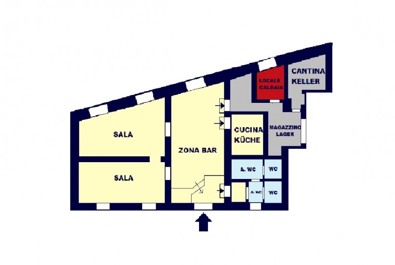Laivescv25001locale ristoranteape: gcat. C1aria condizionataspese condominiali: 0in zona centrale a laives, in via kennedy, vendiamo un locale adibito ad attività ristorativa.attualmente dispone di ca.40 posti a sedere, due sale, un bancone bar.il locale viene venduto con l'arredo e quindi 'pronto all'uso'non si tratta di vendita dell'attività bensù dell'immobile.stai pensando di smettere di pagare un affitto per la tua attività e di portare le tue capacità da ristoratore dentro a le 'tue' mura?allora chiamaci o scrivici una mail per fissare una visita.