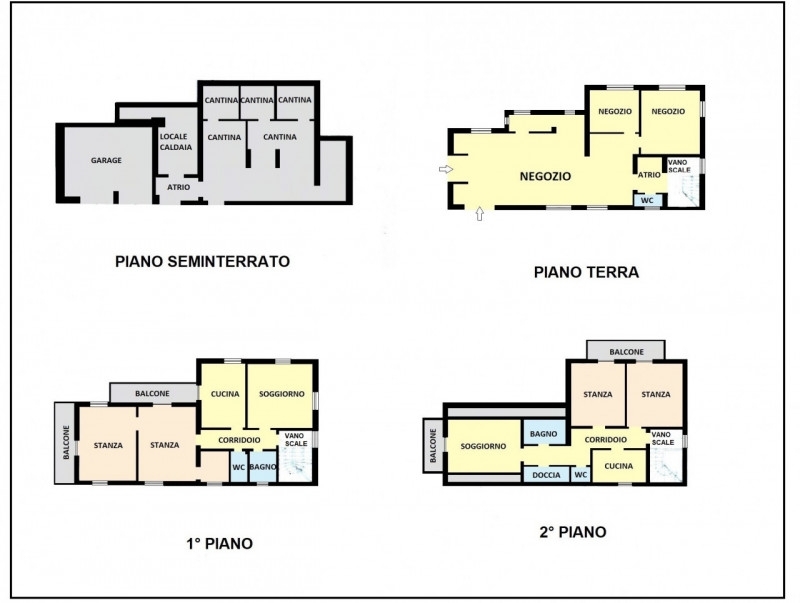 Tipologia: casa su due piani.elenco vani: 2 piano: 2 camere da letto, soggiorno, cucina , bagno , corridoio, 2 balconi 1 piano: 2 camere da letto, soggiorno, cucina , bagno , corridoio, 2 balconipiano terra: attività/negozio affittato piano seminterrato: garage doppio , locale caldaia , atrio , cantina particolarita': la casa è situata in una zona ben servita, immensa nel verde, vista montagne.