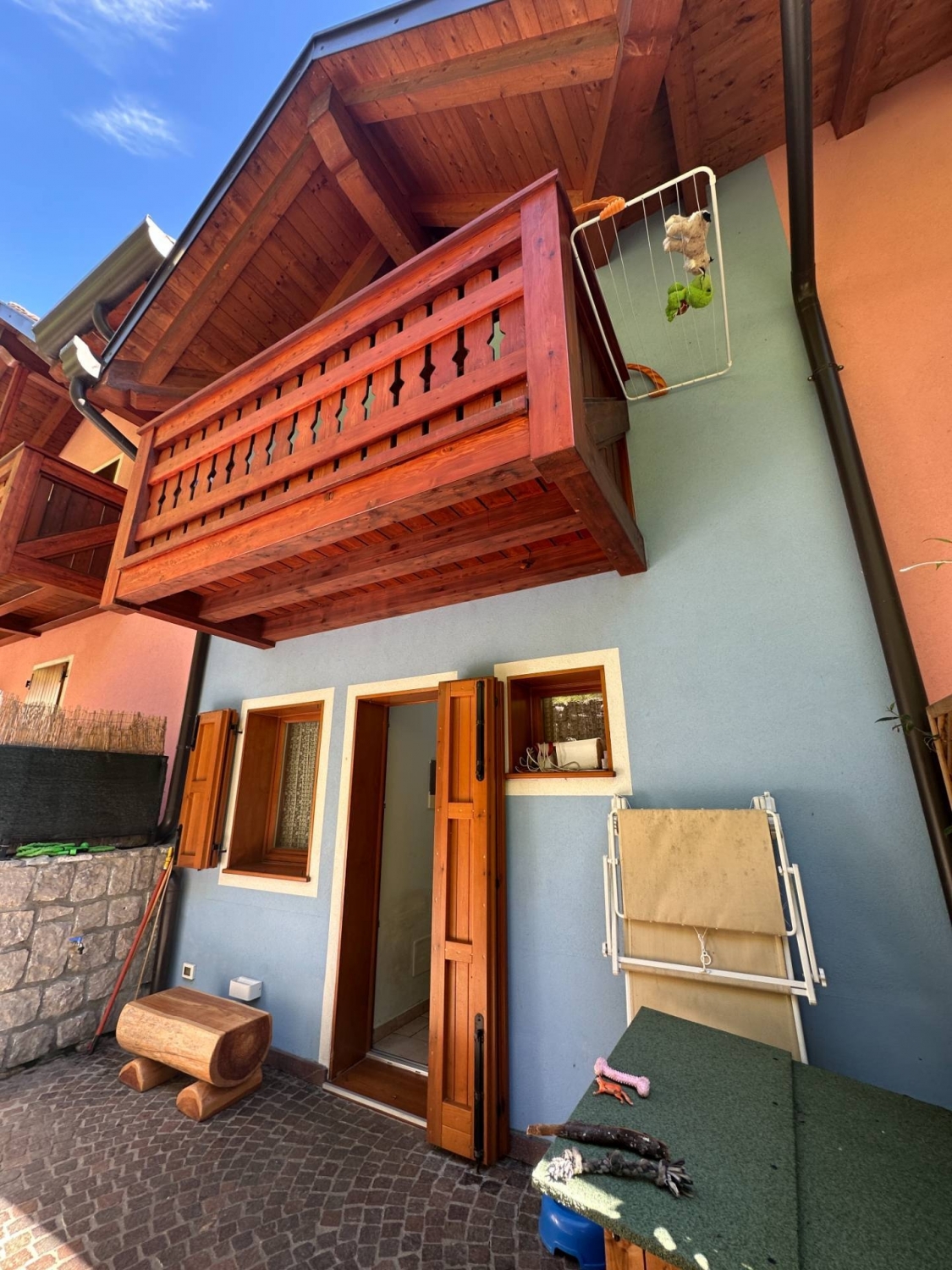 Nel comune di strembo villetta a schiera centrale su due livelli: piano rialzato e primo piano mansardato, con a piano interrato garage, spazio lavanderia e cantina.l'abitazione è arredata, è in ottima posizione soleggiata e panoramica a soli 8 minuti dalle funivie di pinzolo.l'appartamento è di circa mq 95 con ingresso indipendente da scala esterna e proprio terrazzino ed è cosù composto: al piano rialzato, ingresso nell'ampia zona giorno open space con spazio relax con divano e stufa a pellet, zona pranzo con tavolo e giro panca, angolo cottura, un bagno e uscita sul terrazzo esterno privato, scala per il primo piano dove si trovano due stanze da letto entrambe con balcone e un bagno.direttamente dall'appartamento si accede al box, allo spazio lavanderia e alla cantina poste al piano interrato. di pertinenza c'è un ulteriore posto macchina esterno.l'impianto di riscaldamento è a pavimento con pompa di calore e pannelli fotovoltaici, l'abitazione è in classe a di casaclima con ricircolo aria forzata, impianto aspirapolvere centralizzato e pannelli solari per la produzione dell'acqua calda.