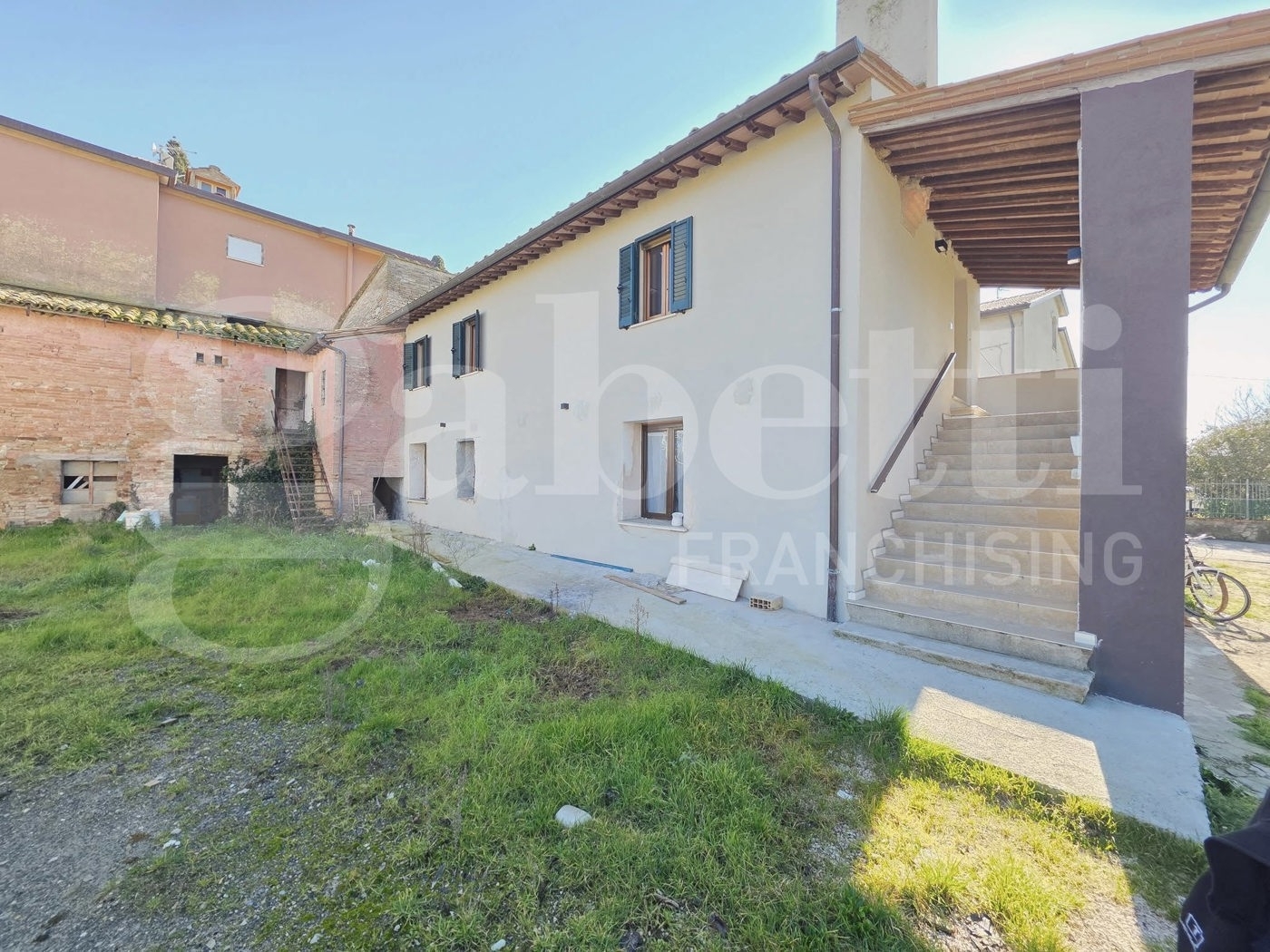 Bastia umbra: in zona tranquilla disponiamo di soluzione semindipendente disposta su due livelli e composta da due appartamenti con ingressi indipendenti. Il piano terra si compone di garage, cantina ed appartamento bilocale ristrutturato nel 2025 con soggiorno con angolo cottura, una camera ed un bagno; il piano primo si compone di appartamento parzialmente ristrutturato con ampio soggiorno, cucina separata ed abitabile, tre camere da letto, un bagno ed una lavanderia. A completamento della proprietà corte esclusiva di 120 mq e porzione di cielo terra di 50 mq da ristrutturare attualmente adibito a fondi e cantine.