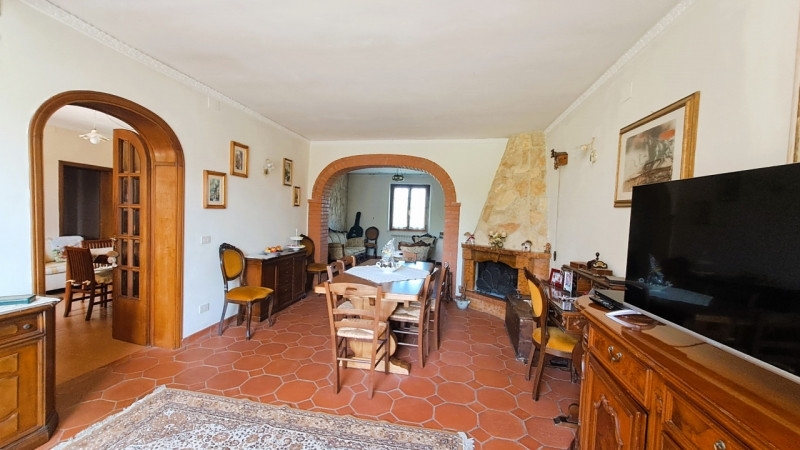 In una delle zone più suggestive della campagna umbra, al confine con la toscana e a pochi minuti da castiglione del lago, proponiamo in vendita una magnifica porzione di bifamiliare di circa 180 mq, disposta su due livelli e recentemente ristrutturata, circondata da un ampio terreno di circa 8.000 mq e arricchita da un annesso di 60 mq adibito a garage.la proprietà è accessibile tramite cancello privato che si apre su un curatissimo giardino ornamentale. Un portico accogliente conduce all'ingresso principale, che introduce in un luminoso e spazioso soggiorno con camino, ideale per momenti di relax. Adiacente troviamo una zona pranzo conviviale, una cucina abitabile con tinello, un bagno con doccia e un locale tecnico dotato di stufa a pellet collegata all'impianto di riscaldamento.al piano superiore si sviluppa la zona notte, composta da tre ampie camere da letto, tutte con accesso a un suggestivo balcone coperto, un secondo bagno con vasca e un terrazzo panoramico di circa 34 mq, dal quale si può ammirare una vista impareggiabile sulla campagna circostante.la casa è stata completamente ristrutturata con grande attenzione ai dettagli e, nel luglio 2024, è stato installato un moderno impianto di climatizzazione nella zona notte per garantire il massimo comfort in ogni stagione.completano la proprietà una cantina di circa 24 mq, un garage spazioso e funzionale, e un terreno esclusivo con pozzo, ideale per chi desidera coltivare, realizzare un orto o semplicemente godere del contatto diretto con la natura.una soluzione perfetta per chi cerca tranquillità, privacy e benessere, senza rinunciare alla comodità e alla bellezza di vivere tra umbria e toscana.
