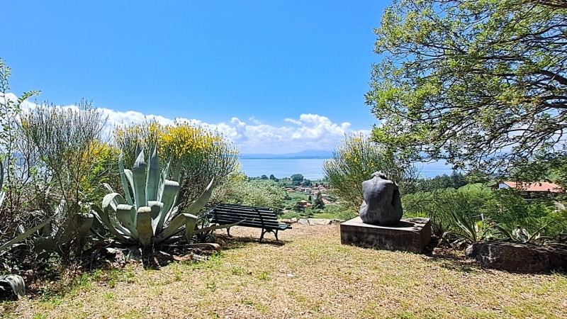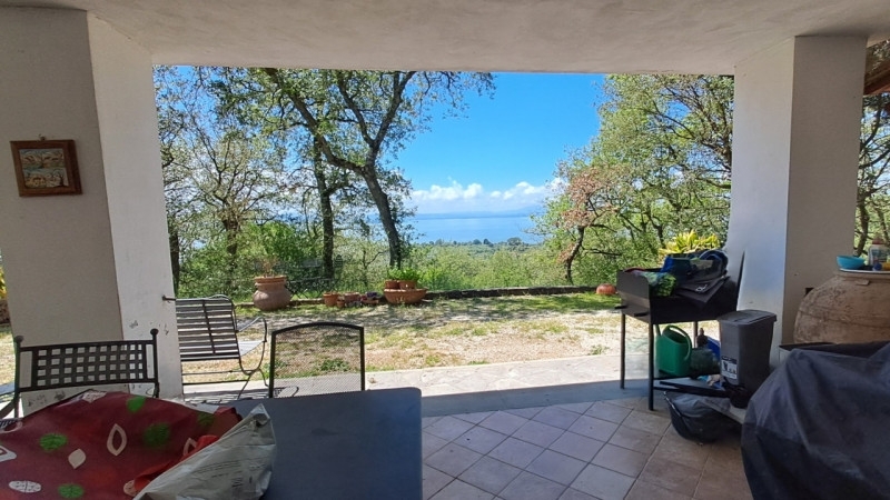 Splendida villa panoramica affacciata sul lago trasimeno, immersa in un parco privato di circa 5 ettari con uliveti e un'area boschiva. La proprietà, caratterizzata da eleganza e indipendenza energetica, è suddivisa in due abitazioni su due livelli, collegate da un comodo ascensore interno. piano terra: l'accesso principale avviene attraverso un raffinato portico esterno, che conduce direttamente alla luminosa zona giorno, composta da un ampio salone e una cucina con isola centrale. La zona notte include uno studio, due camere da letto comunicanti, due bagni e un pratico ripostiglio. Inoltre, sullo stesso livello si trova un ampio garage, attualmente adibito a lavanderia e deposito. piano primo:il cuore della villa è un elegante open space che unisce ingresso, cucina, sala da pranzo e salone con un suggestivo camino sospeso. Questo ambiente, particolarmente luminoso, si apre su una magnifica terrazza con vista mozzafiato sul lago. La zona notte ospita tre spaziose camere da letto, una cabina armadio e tre bagni con doccia. spazi tecnici e indipendenza energetica:adiacente alla villa, un fondo seminterrato ospita un avanzato sistema tecnologico: un generatore elettrico da 18 kw, un sistema di filtraggio dell'acqua proveniente dall'acquedotto, dal pozzo e dal serbatoio di riserva, oltre ai motori dell'impianto di climatizzazione centralizzato e al quadro di controllo delle linee elettriche separate. Questi accorgimenti garantiscono alla proprietà totale indipendenza idrica ed energetica in caso di necessità. esterni e comfort l'ingresso del piano primo è protetto da un ampio portico pavimentato, mentre una suggestiva terrazza vista lago offre accesso diretto a un sentiero immerso nel bosco, che conduce a un incantevole annesso in legno adibito a studio e sala relax. Il giardino recintato, curato nei minimi dettagli, dispone di impianto di illuminazione, molteplici punti acqua e prese di corrente, oltre a un doppio cancello di ingresso automatizzato. la proprietà è protetta da un avanzato sistema di allarme con videosorveglianza interna ed esterna, che assicura tranquillità e protezione in ogni momento. Totalmente autonoma sul piano energetico e idrico, la villa rappresenta un perfetto equilibrio tra comfort moderno e sostenibilità.progetto piscina e posizioneun progetto già approvato prevede la realizzazione di una piscina biodesign di 25 metri con effetto cascata naturale, perfettamente integrata nel paesaggio. la villa gode di una posizione panoramica dominante, a pochi minuti d'auto dal centro di passignano, offrendo privacy assoluta e un contesto naturale di rara bellezza.