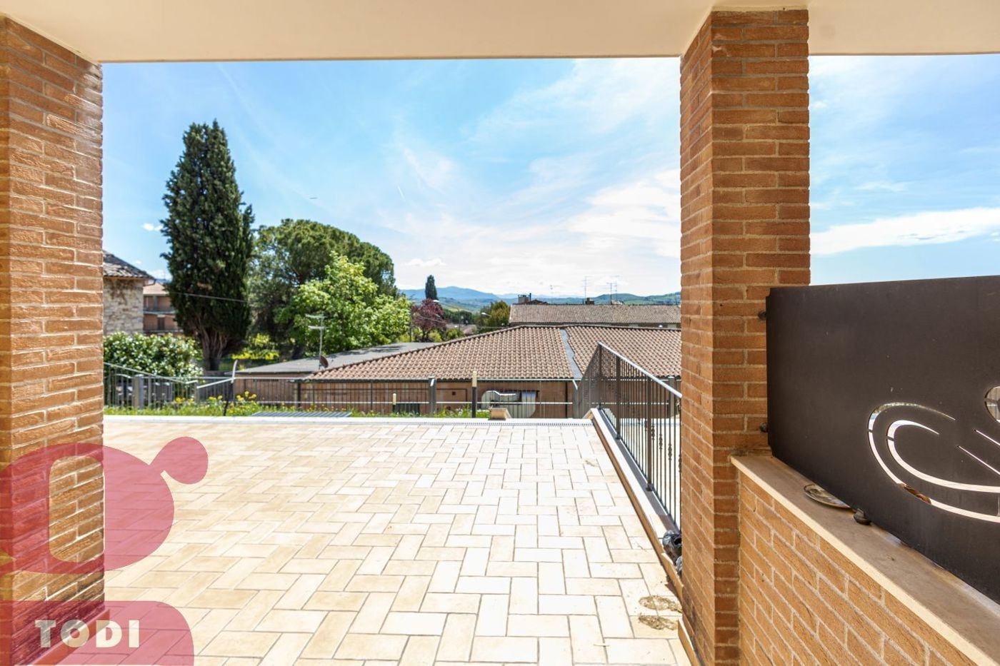 Villetta a schiera libera su tre lati, di nuova costruzione con giardino, portico, box auto e bellissima vista panoramica, proprio nelle immediate vicinanze del centro storico, a pochi passi dalla consolazione.quest?abitazione, disposta su tre livelli per circa 100 mq di superficie utile, offre un doppio ingresso indipendente: quello dall?esterno attraverso il giardino (100 mq) antistante il portico (30 mq) e quello dal garage sottostante la zona abitativa, attraverso scala interna.il piano terra rialzato ospita da progetto di costruzione la futura zona giorno, composta da ampi spazi: sala da pranzo e living con cucina a vista, bagno ed antibagno.la scala interna ci porta al primo piano, destinato ad accogliere la zona notte che vanta 2 ampie camere matrimoniali di cui una con bagno en-suite, un secondo bagno, uno studio che può essere usata come camera singola ed un corridoio a disimpegnare le stanze per maggiore privacy. Sia la camera da letto padronale che lo studio hanno accesso diretto al balcone di 30 mq con meravigliosa vista sulla vallata ai piedi di todi.è attraverso la medesima scala che scendiamo al piano seminterrato di 76 mq, dove troviamo la cubatura riservata ad una cantina, una zona lavanderia ed un capiente garage.in aggiunta a questo, un ulteriore posto auto riservato adiacente alla proprietà, che consente un comodo accesso all'abitazione.questa proposta è attualmente allo stato grezzo: ciò permette di personalizzare spazi e finiture dando forma e colore alle proprie preferenze. Una possibilità ambita da chi esula dall?acquisto di una casa pronta che costringa in un ambiente dal design preconfezionato ed è alla ricerca di uno spazio a propria immagine.venendo all'impiantistica, l?immobile è dotato di impianto di riscaldamento a pavimento con regolazioni a zona, che, unitamente all?isolante di 15 cm nei muri, garantisce temperature fresche d?estate e calde d?inverno, promettendo un notevole risparmio.la predisposizione per l'impianto di allarme e la presenza di imposte esterne blindate conferiscono la massima sicurezza.l?immobile è inoltre già pronto per l?installazione degli impianti per air-conditioning, videocitofono, internet, tv satellitare, cancello elettrico e serranda automatica in garage.particolare attenzione è stata posta anche in relazione all?antisismica: per l?edificazione sono state rispettate le norme più stringenti in materia. la posizione è perfetta: da un lato comodissima, sia per la possibilità di parcheggio che per la presenza a pochi passi da casa di tutti i servizi di prima necessità (supermercato, farmacia, banca, ecc.), dall'altro panoramica per l'affaccio sulla campagna circostante. La proprietà è anche molto ben collegata con la superstrada e45 (3 km), che consente di raggiungere perugia ed il suo aeroporto in 40 minuti. Orvieto, spoleto ed assisi sono raggiungibili in 40 minuti, roma (130 km) in 1 ora e mezza, mentre i suoi aeroporti (ciampino e fiumicino) in meno di 2 ore.