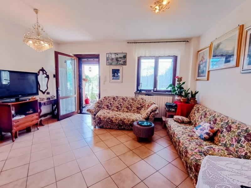 In una zona residenziale tranquilla e ben servita, proponiamo una graziosa villetta a schiera di recente costruzione, disposta su due livelli e dotata di corte privata.la superficie complessiva è di circa 90 mq. Al piano terra si trovano un grazioso portico d'ingresso, un accogliente soggiorno, una cucina separata con accesso diretto al giardino e un bagno-lavanderia. Una scala interna in legno conduce alla zona notte, composta da due camere da letto entrambe con balcone, uno studio ideale come cameretta o home office, un bagno con vasca e pratici ripostigli.la proprietà include un posto auto esterno privato e gode di un piacevole affaccio a ovest sulla campagna. La posizione è particolarmente comoda: a pochi passi si trovano il parco giochi e le rive del lago, mentre la vicinanza alla superstrada garantisce rapidi collegamenti con i principali centri della zona. Possibilità di acquistare l'immobile arredato.