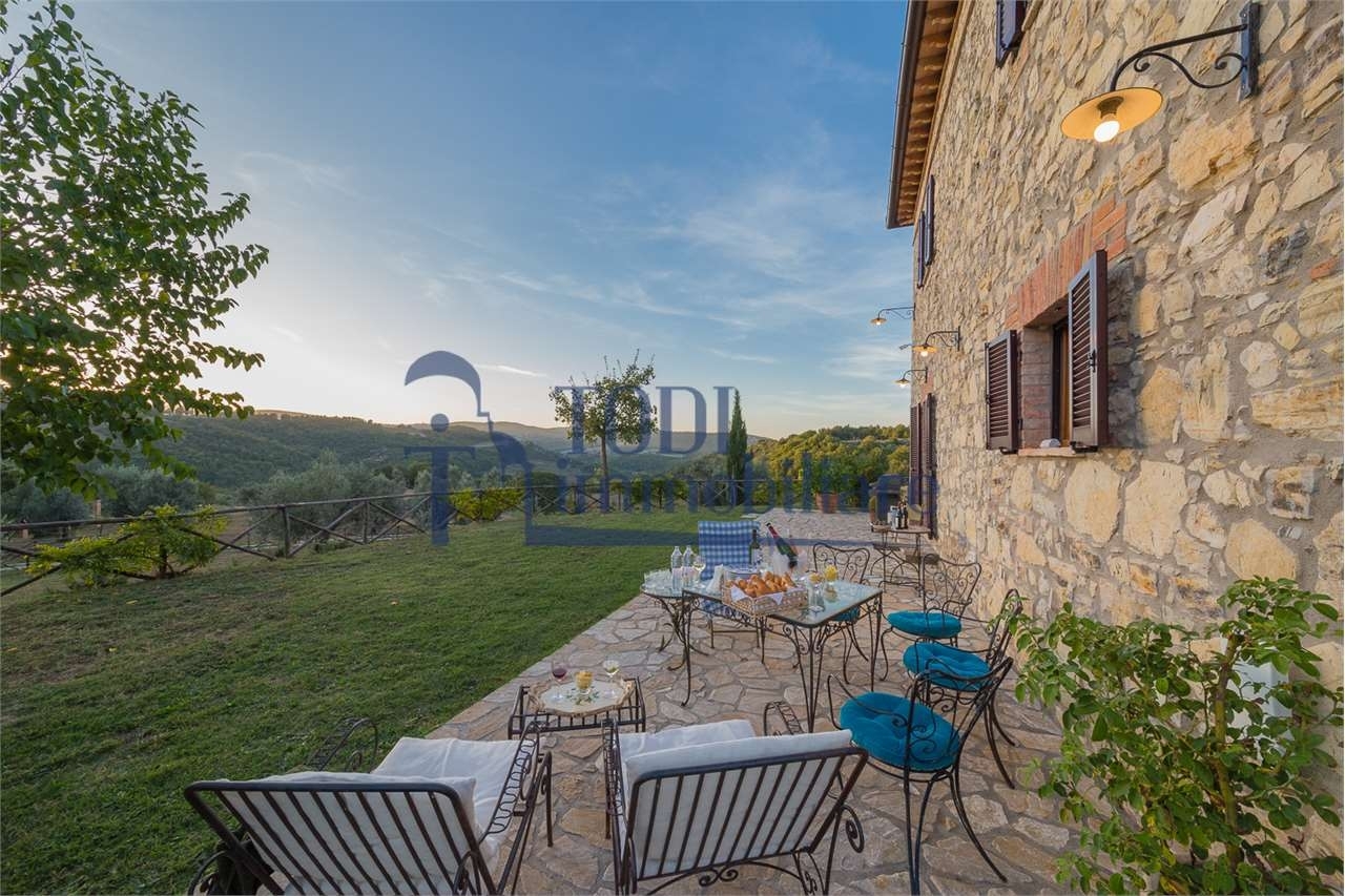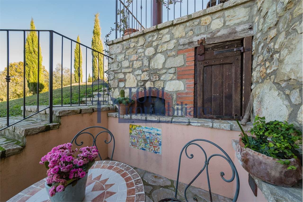 Amelia nello splendido scenario delle colline umbre, importante casale in pietra finemente ristrutturato di 250 mq e annesso, sempre in pietra, di 50 mq. Già predisposto per diventare una comoda dépendance, terreno esclusivo di 14.000 mq. Con oliveto.il casale originario risale xvii secolo - la sapiente ristrutturazione ha preservato il fascino ed il carattere del passato aggiungendo tutti con i comfort del presente. un'opportunità unica per possedere un autentico pezzo di storia umbra!il casale conserva intatti i dettagli architettonici dell'antica dimora rurale: travi in legno restaurate da artigiani locali, pianelle, pavimenti in cotto fatto a mano, mura in pietra a faccia vista. un annesso di 50 mq, già strutturalmente completo, è pronto per essere trasformato in appartamento indipendente, studio o dépendance.disposto su due livelli il casale è cosù suddiviso:al piano terra abbiamo una grande cucina abitabile in raffinato stile country chic, con rivestimento in ceramiche di vietri, sala da pranzo con camino, ampio soggiorno con caratteristici archi originali della vecchia proprietà, zona lavanderia, bagno al piano, locale tecnico, forno a legna esterno;con una elegante scalinata rivestita in cotto saliamo al piano primo dove troviamo una zona disimpegno, con chaise longue e finestra panoramica, dalla quale si accede a:- 4 camere matrimoniali e due eleganti bagni in travertino ; - una splendida area relax _ studio con camino, divano, poltrone , tv ed uscita sulla parte superiore del giardino. tutti gli infissi sono in legno, fatti a mano, le finestre hanno doppi vetri e persiane tradizionalil'annesso in pietra è attualmente adibito a garage e laboratorio attrezzi con ingresso carrabile e pedonale. Ci sono già le predisposizione delle utenze per il cambio d'uso in abitazione. e' presente anche un altro piccolo annesso da recuperare e ristrutturare. Conclude la proprietà il terreno esclusivo di 14.000 mq: parte a giardino ben curato con rose ed altre fioriture, parte oliveto con circa 50 olivi in produzione, parte orto e alberi da frutto. l'ampio spazio esterno permette la costruzione di una piscina con solarium e tutte le relative pertinenze. situato ai margini di un tranquillo bosco e a pochi passi da un torrente, è la scelta ideale per chi cerca natura e riservatezza, per gli amanti della privacy e del vivere all'aperto - è possibile lavorare dall'abitazione in smart working.il paesaggio incontaminato consente di rigenerarsi in assoluto relax e di assaporare cene all'aperto godendo splendidi tramonti sulle colline!la proprietà è raggiungibile tramite una suggestiva strada di campagna di 1,2 km non asfaltata, transitata solamente dalle poche proprietà limitrofe, di cui l'ultima preserva, ben curato, un originale molino ad acqua che insieme al vicino 'torrente dell'arnata' fa parte del circuito turistico del territorio.la proprietà è recintata, si accede attraverso un cancello automatico in ferro. Circondata da ulivi secolari e cipressi per la massima privacy, è sita su un dolce pendio con vista mozzafiato e ininterrotta sulla campagna umbral'esposizione est-ovest garantisce luce naturale durante tutto il giorno un rifugio pronto per essere abitato: autentico, elegante e immerso nella natura. Perfetto come residenza principale, casa vacanze o villa di rappresentanza!tutti i servizi quali supermercati, banche, ufficio postale, sono nel raggio di 10 km. Nelle località: todi, ponterio e avigliano umbro entro mezz'ora d'auto sono raggiungibili tutte le mete turistiche umbre quali: amelia, terni, spoleto, cascata delle marmore, narni, perugia, deruta, assisi, lago trasimeno, ecc.l'aeroporto internazionale 's. Francesco di assisi' di perugia è a soli 50 km.roma dista 150 kmfirenze dista 190 kmchiamaci per fissare un appuntamento e vedere l'immobile sul posto!classe energetica: 43,74 kwh/m2 a