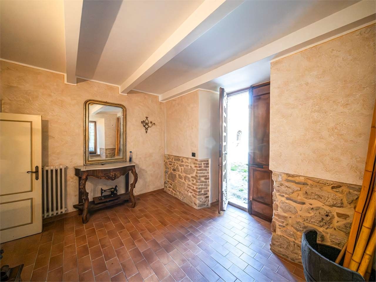 Prestigiosa dimora storica con terrazza panoramica sul lago di corbaracivitella del lago umbrianel cuore dell'umbria più autentica, tra todi e orvieto, all'interno dell'incantevole borgo medievale di civitella del lago, proponiamo in vendita una straordinaria residenza storica del xv secolo, rara opportunità immobiliare di assoluto pregio.immersa in un contesto di quiete e bellezza senza tempo, la proprietà domina il paesaggio circostante offrendo panorami aperti e suggestivi sul lago di corbara e sulla media valle del tevere, tra vigneti, oliveti e boschi secolari.la dimora, appartenuta alla nobile famiglia tuderte degli atti, si sviluppa su quattro livelli per una superficie complessiva di circa 550 mq, conservando intatti elementi architettonici originali di grande valore storico e artistico: facciate in pietra, inserti in marmo travertino, soffitti affrescati, camini monumentali, volte a vela e ambienti di rara eleganza.il collegamento tra i piani avviene tramite una raffinata scala interna in marmo rosso di prodo, elemento distintivo che accompagna il percorso attraverso spazi ampi, luminosi e scenografici.distribuzione degli ambienti:piano terraimportante ingresso di rappresentanza con doppio accesso, cucina abitabile, studio con soffitti affrescati, bagno e un maestoso salone panoramico con camino ottocentesco in marmo travertino, soffitti con volte a vela e grandi finestre che incorniciano il paesaggio umbro.piano primozona notte con due camere matrimoniali e due bagni, ideale come piano padronale o area ospiti.piano secondoampia zona living con cucina abitabile, grande salone con camino e accesso diretto al terrazzo panoramico a pozzo, autentico gioiello della proprietà. Il piano ospita inoltre quattro camere matrimoniali e due bagni, rendendolo perfetto per accogliere famiglia e ospiti in totale comfort.piano seminterratoaffascinante salone in pietra con volta a botte in mattoncini, affacci panoramici sorprendenti, cantina e accesso diretto alla corte esterna esclusiva, ideale per momenti conviviali o degustazioni private.valore storico e unicitàla dimora è situata all'interno del prestigioso cortile degli atti, nel cuore del centro storico, con accesso dall'iconico arco di diomede, edificato da diomede degli atti, nobile tuderte e rettore della chiesa di santa maria. Un contesto di assoluta riservatezza e fascino, riservato a poche proprietà di grande valore storico.completa la proprietà un terreno privato di circa 1.300 mq, con accesso diretto dalla residenza, elemento raro per un immobile all'interno di un borgo medievale.una residenza esclusivaquesta dimora rappresenta la soluzione ideale come:residenza privata di prestigiodimora di rappresentanzaresidenza per ospitalità di alto livelloinvestimento immobiliare di valore storico e patrimonialeun'opportunità unica per chi desidera vivere o investire in una residenza senza tempo, dove storia, panorama e lusso discreto si fondono in un'esperienza abitativa irripetibile.classe energetica: g
