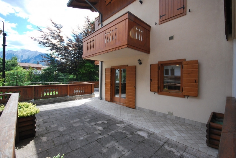 In tranquillo contesto residenziale proponiamo in locazione transitoria un ampio appartamento al piano terra, inserito in un curato complesso residenziale e dotato di ampia terrazza esterna privata.l'immobile si raggiunge tramite l'ingresso condominiale e si apre direttamente su un luminoso soggiorno, con accesso allo scoperto di pertinenza, ideale per momenti di relax all'aperto. Lo spazio esterno è attrezzato con zona pranzo e area barbecue.l'angolo cottura è separato e ben attrezzato.la zona notte è composta da:una camera matrimoniale, una cameretta con letto singolo raddoppiabile e due bagni.l'appartamento, dotato di ascensore, è rifinito con cura e gusto, dispone di comodo posto auto in autorimessa ed è dotato di riscaldamento autonomo con caldaia a gpl.