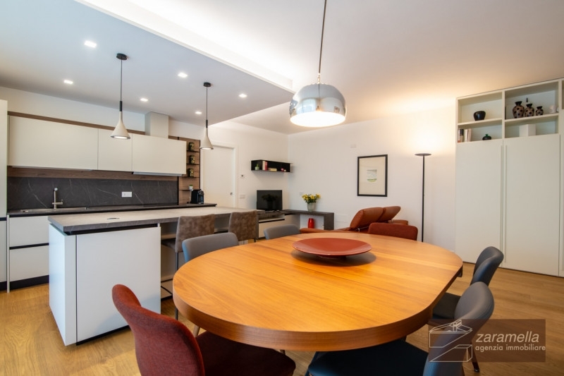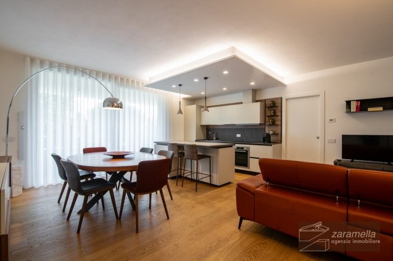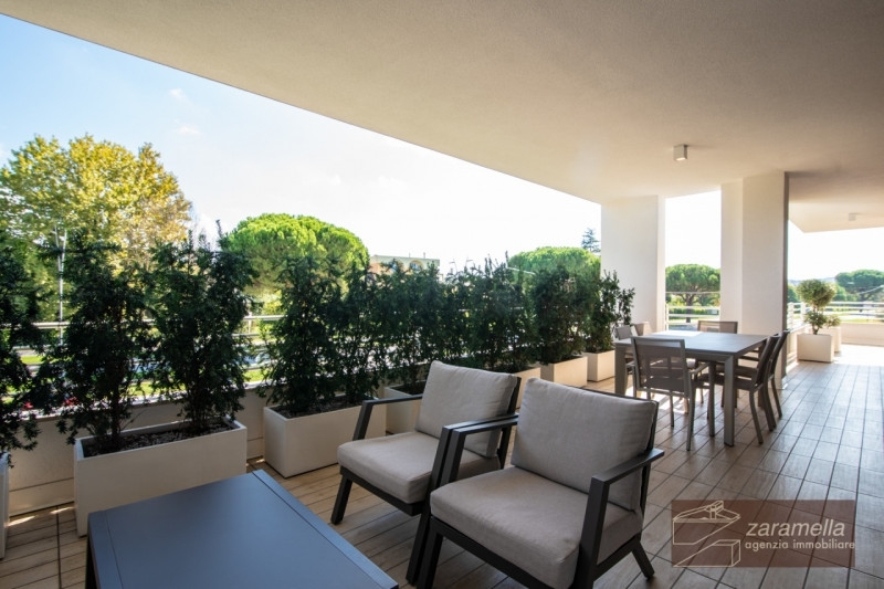 A due passi dalla zona pedonale, in nuova ed elegante palazzina, luminoso appartamento con terrazza avvolgente di ampie dimensioni e vista aperta sui colli; l'abitazione è esposta a sud/est, completamente arredata con arredi di pregio e in perfette condizioni.l'appartamento si sviluppa su unico piano ed è servito da ascensore, la zona giorno è composta da ampio soggiorno e cucina a vista con uscita diretta sulla terrazza completamente piantumata dove troviamo un secondo salotto e pranzo all'aperto. La zona notte è composta da disimpegno, 2 camere entrambe con uscita sulla terrazza, 2 ampi bagni.completano le dotazioni dell'immobile il garage al piano terra e 2 posti auto di proprietà.l'abitazione è in classe a4, il riscaldamento è a pavimento, caldaia autonoma in pompa di calore, vmc, impianto fotovoltaico, predisposizione allarme, aria condizionata in ogni stanza, avvolgibili motorizzati, zanzariere.