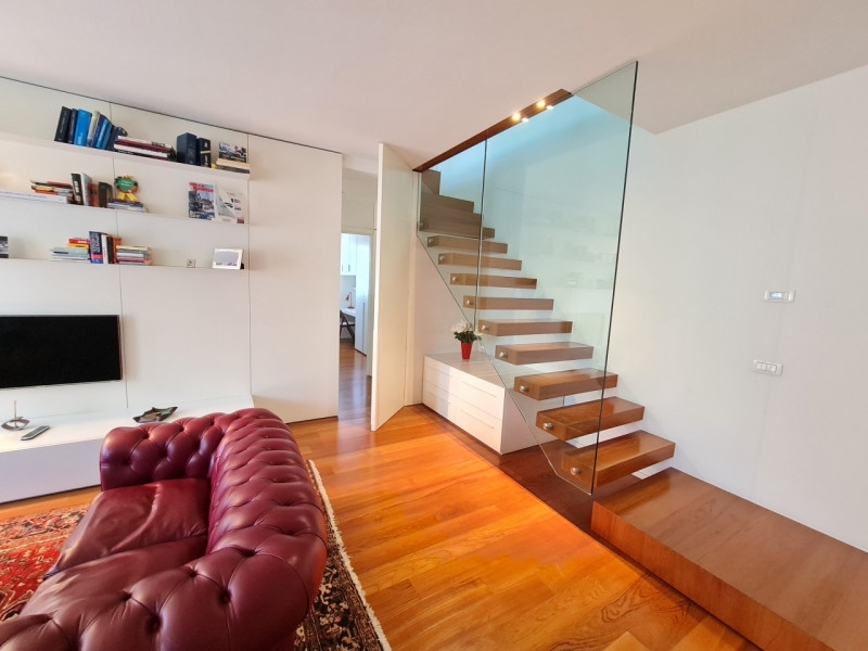 Attico esclusivo situato in una delle zone più prestigiose di abano terme, con una vista spettacolare sul parco urbano termale. Questa proprietà dalle caratteristiche contemporanee, uniche, rappresenta un autentico gioiello immobiliare, che coniuga design raffinato e comfort senza pari.gli spazi ben distribuiti su circa 200 mq, sono caratterizzati dalla perfetta esposizione solare di ogni ambiente. L'ingresso si apre sulla confortevole zona giorno, che affaccia su un terrazzo con vista sul parco, spazio ideale per momenti di relax. Un elegante disimpegno arricchito da armadiature su misura conduce alla camera matrimoniale dotata di ampie vetrate sempre con suggestiva vista sul parco, a una seconda camera arredata e al bagno padronale finestrato, munito dei migliori comfort.la scalinata in legno con balaustra in vetro porta al piano mansardato, dove si respira un'atmosfera accogliente e sofisticata. La spaziosa zona living è arricchita da un caminetto sospeso e da ampie vetrate che offrono vedute incantevoli e uniche sul parco urbano. Al piano si trovano anche la cucina separata ed arredata su misura, completa di elettrodomestici e una zona pranzo con poggiolo privato. Completano questo livello una lavanderia funzionale ed un secondo importante bagno, una camera/studio arredata, perfetta per soddisfare le diverse esigenze familiari.la proprietà è dotata di due garage al piano interrato, con basculanti motorizzati e accessibili direttamente dall'interno dello stabile tramite ascensore, un plus particolarmente apprezzato nelle zone urbane.le finiture moderne non mancano: riscaldamento autonomo, aria condizionata canalizzata per garantire sempre un clima perfetto, pavimenti in legno pregiato che arricchiscono ogni ambiente, portoncino blindato e impianto di allarme.l'attico è situato in un complesso residenziale di prestigio, in una posizione strategica a pochi passi dall'area pedonale di abano terme. Qui potrete godere della vicinanza a eleganti bistrot, ristoranti rinomati e rigeneranti piscine termali, negoai e servizi di ogni genere. La città di padova, con la sua basilica del santo, è facilmente raggiungibile, cosù come il golf club della montecchia, a soli 5 km di distanza. Gli appassionati di sport acquatici apprezzeranno la vicinanza a the deep joy y-40, mentre gli amanti delle attività outdoor potranno esplorare i numerosi sentieri cicloturistici che attraversano i suggestivi colli euganei.