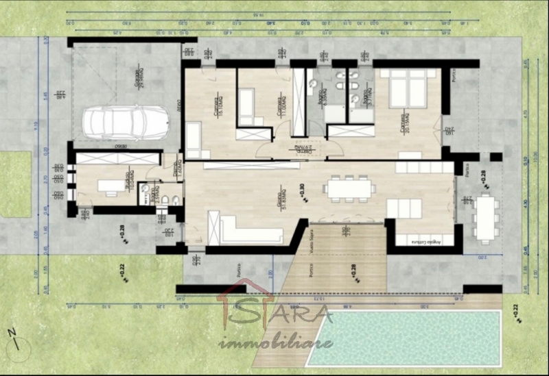 Nel cuore della rinomata zona savioli, una delle più richieste di abano terme, sara immobiliare propone in vendita esclusiva villa contemporanea di circa 230 mq, sviluppata interamente su un unico piano e inserita in lotto privato di 750 mq.una soluzione unica che coniuga architettura moderna, privacy assoluta e massimo comfort abitativo, senza spese condominiali.spazi interni:ampio living open space di oltre 50 mq con grandi vetrateportico coperto con camino a vista, ideale per vivere l'esterno tutto l'annocucina integrata nella zona giorno3 camere matrimoniali, tra cui:master suite (oltre 20 mq) con bagno privato finestrato2 ulteriori bagni completistudio indipendente (10 mq) perfetto per smart workinglavanderia separataaccessori e pertinenze:garage doppio collegato internamente (30 mq)posti auto esternigiardino privato su 4 latipossibilità di piscina (circa 30 mq)caratteristiche e dotazioni:architettura contemporanea con rivestimenti in pietra naturalegrandi superfici vetrate per massima luminositàriscaldamento a pavimentopredisposizione domotica e impianto di sicurezzaelevato isolamento termo-acusticofiniture completamente personalizzabili posizione strategica: contesto residenziale esclusivo e tranquillo, comodo a scuole, servizi e centri sportivi, a pochi minuti dalle rinomate terme e dal centro di abano.prezzo richiesto € 595.000 sara immobiliare tel rif. V391