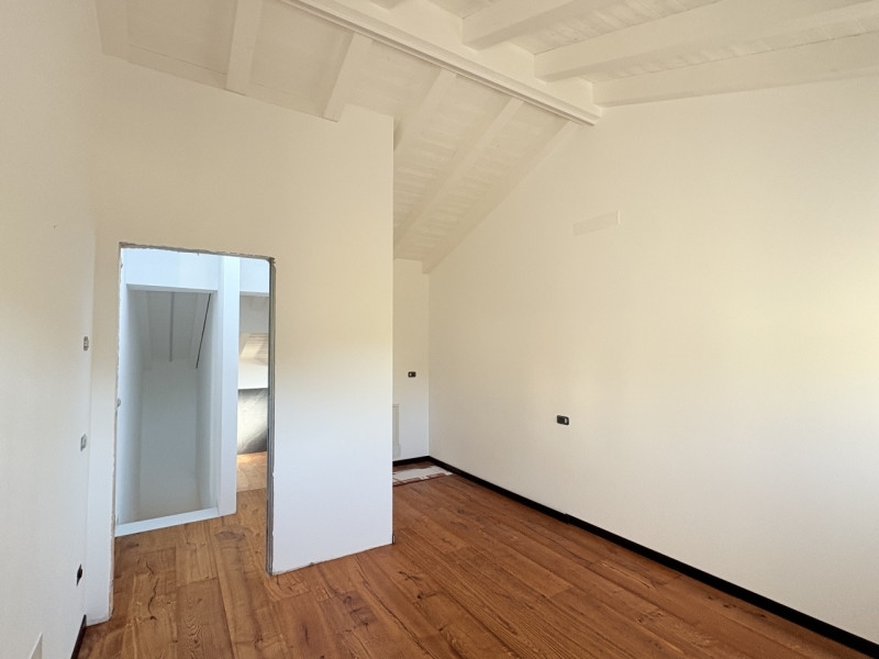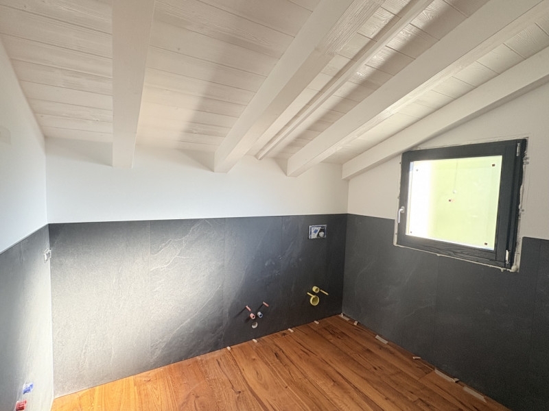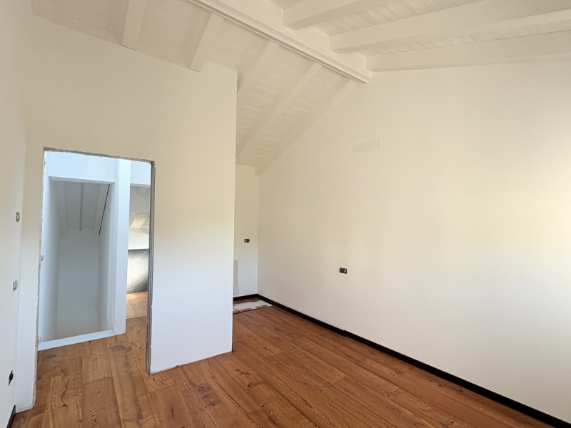 In uno splendido contesto collinare, immerso nella tranquillità e nel verde, proponiamo casa a schiera di nuova ristrutturazione, curata in ogni dettaglio e ideale per chi desidera vivere in un ambiente sereno senza rinunciare al comfort moderno.l'abitazione si sviluppa su due livelli ed è dotata di giardino privato e posto auto riservato.al piano terra si apre una spaziosa cucina di circa 25 mq, caratterizzata da una grande vetrata panoramica che si affaccia sul giardino esterno, creando una piacevole continuità tra interno ed esterno e rendendo gli ambienti luminosi e accoglienti.a completare la zona giorno, un soggiorno separato offre un ulteriore spazio di relax, ideale per momenti di convivialità o per godere della quiete del luogo. Completa il tutto un bagno padronale con ampia doccia.la zona notte, situata al piano superiore, ospita due camere da letto e un bagni, con ampia vista panoramica dalle finestre, che valorizza ulteriormente l'atmosfera calda e naturale della casa.gli interni sono di pregio, con travi a vista che conferiscono carattere e autenticità, riscaldamento a pavimento per il massimo comfort e materiali selezionati con gusto.l'immobile si trova in una zona collinare tranquilla, ben esposta e immersa nel verde, perfetta per chi cerca un'abitazione accogliente, elegante e funzionale in un contesto rustico.