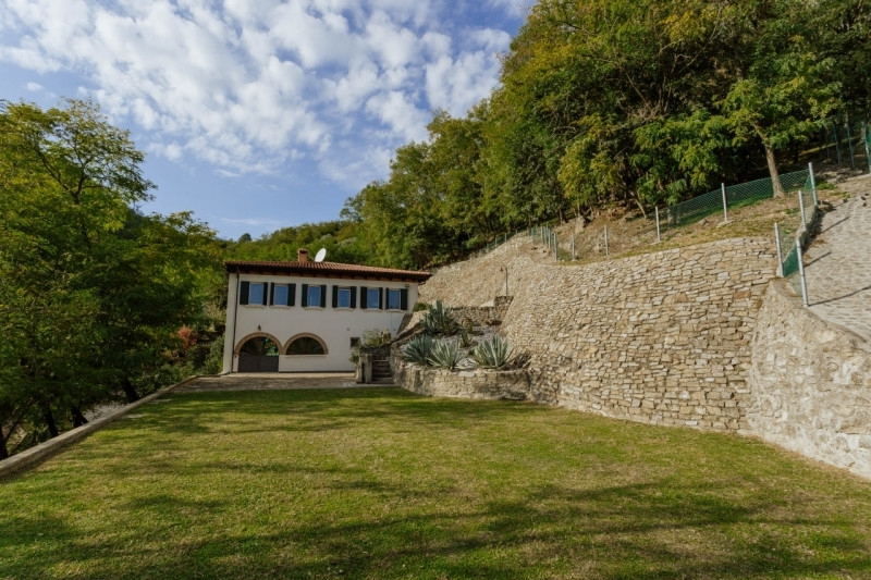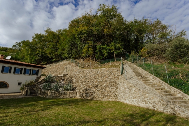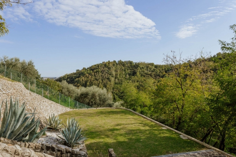 Galzignano terme: villa contemporanea situata in posizione aperta e panoramica; la proprietà di circa 17.000 mq è contornata da bosco e quindi garantisce massima privacy pur essendo comoda al centro del paese. L'abitazione è stata oggetto nel 2008 di ampliamento e radicale ristrutturazione, si sviluppa su due livelli. Il cuore abitativo è sviluppato al piano soprelevato e si compone di una terrazza coperta con vista sulla proprietà che da accesso all'ingresso che funge da disimpegno delle varie zone abitative che sono:il soggiorno, la sala da pranzo con camino adiacente alla cucina che permette due uscite su lati opposti, il bagno ospiti e il locale lavanderia con uscita diretta all'esterno, l'ampio corridoio della zona notte che permette di raggiungere le tre camere matrimoniali, ciascuna con il proprio bagno finestrato personale con doccia.dall'ingresso si accede alla scala che ci conduce al piano terra della villa costituito da: l' ampio salone con due portoni ai lati opposti di uscita sul giardino, un bagno ed un ripostiglio.la ristrutturazione ha permesso la sostituzione di tutti i serramenti con altri di nuova generazione dotati di zanzariere, il rifacimento di tutti i bagni e la costruzione di altri, il nuovo impianto di riscaldamento a pavimento suddiviso in varie zone, l'installazione di impianto termico-solare per la produzione di acqua calda con rifacimento di tutta la copertura, la sostituzione di tutto l'impianto elettrico.e' stato poi costruito un nuovo edificio su due livelli adibito a garage per due posti auto con portoni motorizzati e bagno con ripostiglio e magazzino al primo piano con accesso dall'esterno.il giardino che contorna la villa è stato rivisitato creando alcuni terrazzamenti con murature in pietra ed un suggestivo percorso perimetrale recintato, la proprietà prosegue oltre la rete fino alla sommità della collina piantumata con essenze tipiche della zona.una delle uscite del salone del piano terra sfocia su un prato con doccia esterna per momenti di relax o per prendere il sole, lo spazio permette di realizzare una piscina.l'immobile viene venduto completamente arredato, è dotato di impianto di climatizzazione.galzignano terme: contemporary villa located in an open and panoramic position; the property of about 17,000 sqm is surrounded by woods, ensuring maximum privacy while being convenient to the town center. The house underwent an extension and complete renovation in 2008 and is spread over two levels. The main living area is on the raised floor and consists of a covered terrace overlooking the property, which leads to the entrance that serves as a hallway for the various living areas, which are: the living room, the dining room with a fireplace adjacent to the kitchen, which allows two exits on opposite sides, the guest bathroom, and the laundry room with direct access to the outside. The spacious corridor in the sleeping area leads to the three double bedrooms, each with its own private windowed bathroom with a shower.from the entrance, you access the staircase that leads us to the ground floor of the villa, which consists of: a large living room with two doors on opposite sides opening onto the garden, a bathroom, and a storage room. the renovation allowed for the replacement of all windows with new-generation ones equipped with mosquito nets, the refurbishment of all bathrooms and the construction of additional ones, a new underfloor heating system divided into various zones, the installation of a solar-thermal system for hot water production with a complete roof renovation, and the replacement of the entire electrical system. a new two-level building was then constructed, intended as a garage for two cars with motorized doors, a bathroom with storage, and a warehouse on the first floor with external access. the garden surrounding the villa has been redesigned, creating several terraces with stone walls and an attractive fenced perimeter path. The property extends beyond the fence up to the top of the hill, planted with typical local vegetation. One of the exits from the ground floor living room opens onto a lawn with an outdoor shower, ideal for moments of relaxation or sunbathing; the space also allows for the installation of a swimming pool. The property is sold fully furnished and is equipped with an air conditioning system.