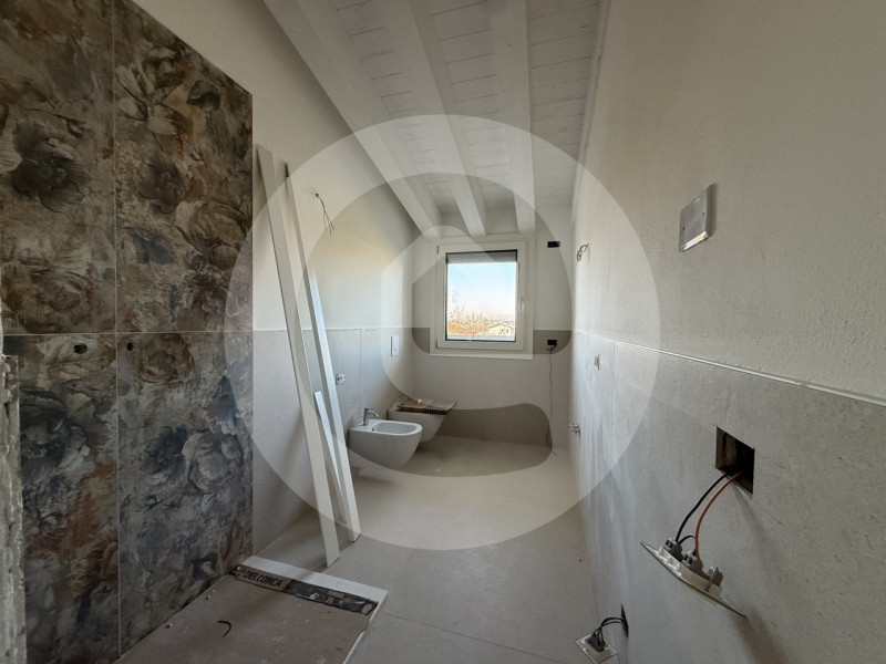 Scopri un'opportunità unica nel cuore della tranquillità! situato nella suggestiva frazione di fratte, a santa giustina in colle (pd), inserito all'interno di una nuova palazzina immersa nel verde e nelle tranquillità ma a pochi passi da scuole, farmacia, supermercati e stazione ferroviaria.l'appartamento è ubicato al secondo ed ultimo piano e presenta travi a vista che donano un tocco moderno e accogliente agli ambienti. Con i suoi 120 mq interni ben distribuiti, offre una spaziosa zona giorno openspace perfetta per conviviali momenti in famiglia o con amici. La composizione interna include anche due bagni completi con doccia e tre ampie camere da letto.uno dei punti forti dell'immobile è il terrazzo perimetrale di 50 mq: uno spazio ideale dove godere del sole durante le belle giornate o organizzare cene all'aperto.in aggiunta, l'appartamento dispone di un garage spazioso al piano terra e posto auto esclusivo. è dotato delle più moderne tecnologie per il risparmio energetico e isolamento acustico, compreso un impianto fotovoltaico che garantisce bassissimi costi gestionali. Non mancano ascensore ed altre comodità pensate per migliorare la qualità della vita quotidiana.gli acquirenti hanno inoltre la possibilità di scegliere le finiture interne personalizzando cosù gli spazi secondo il proprio gusto personale!non lasciarti sfuggire questa occasione imperdibile! contatta la nostra agenzia epos casa di camposampiero al numero per organizzare la tua visita!