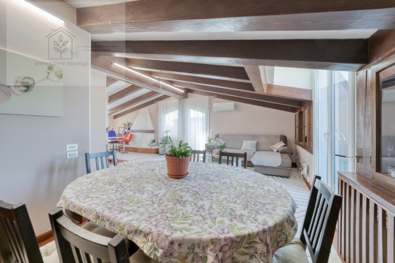 Nel cuore della rinomata zona di tencarola, nel comune di selvazzano dentro, proponiamo in vendita un luminoso appartamento mansardato di circa 110 mq. L'immobile si distingue per gli ambienti ampi e luminosi, caratterizzati da una splendida zona giorno con travi a vista in legno scuro che donano calore ed eleganza all'ambiente, il soggiorno è arricchito da grandi finestre che garantiscono una luminosità naturale durante tutto il giorno. La cucina separata è spaziosa e funzionale, dotata, come ogni stanza dell'appartamento, di uscita su balcone privato. La sala da pranzo offre spazio sufficiente per accogliere amici e familiari nelle occasioni conviviali più importanti.l'immobile occupa tutto l'ultimo piano di un piccolo condominio di sole 3 unità, con spese condominiali 'bassissime', è dotato di un garage doppio, fuori terra, di circa 25mq la posizione strategica consente facile accesso ai principali servizi (supermercati, scuole e mezzi pubblici) pur mantenendo la tranquillità tipica della frazione tencarola.soluzione ideale sia come prima casa che come investimento immobiliare data la crescente richiesta della zona.per maggiori informazioni o per fissare una visita senza impegno contatta subito l'agenzia immobiliare alterego,: saremo lieti di accompagnarti alla scoperta della tua prossima casa!