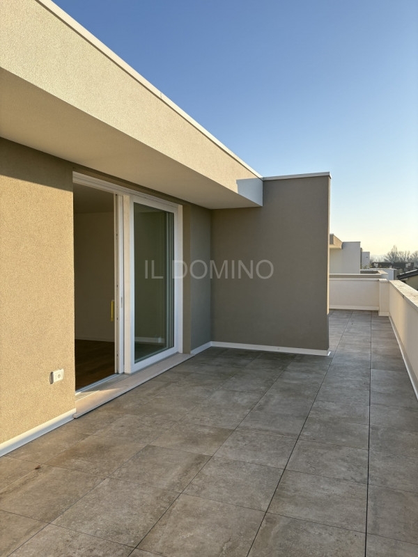 Attico di nuova costruzione, in classe energetica a4, in pronta consegna. Situato in una zona servita ma tranquilla di tencarola, comodo ai principali servizi. L'appartamento è situato al piano 2° ed ultimo di una nuova palazzina signorile servita da ascensore, esposto e libero su 3 lati. Composto da: ingresso, salone cucina open space di 51mq, disimpegno, 3 camere da letto, 2 bagni, grande terrazza da 75mq. Al piano terra garage ampio e posto auto.