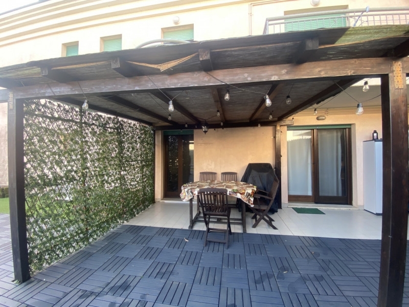In vendita, nel cuore di veggiano, proponiamo un affascinante appartamento trilocale al primo piano, servito da ascensore. Questa soluzione unica si distingue per il suo introvabile terrazzo di ben 120 mq, perfetto per godere delle serate estive in compagnia degli amici o semplicemente per rilassarsi all'aria aperta.l'immobile si compone di un soggiorno con angolo cottura dal quale si accede direttamente al terrazzo dotato di pompeiana. La zona notte è composta da una camera matrimoniale spaziosa e una camera singola di circa 10 mq. Completa la disposizione interna un bagno elegante con vasca e un secondo bagno attrezzato con doccia.a rendere questa offerta ancora più interessante è incluso anche un garage privato di 22 mq, ideale per riporre comodamente l'auto e altri effetti personali.tra le caratteristiche aggiuntive dell'appartamento troviamo zanzariere nuove installate solo un anno fa, aria condizionata efficace e caldaia a condensazione recentemente sostituita due anni fa. situato in una posizione centrale strategica, questo immobile risulta essere la scelta perfetta per giovani coppie o professionisti che desiderano vivere vicino ai principali servizi della città: panificio, scuole e bar sono facilmente raggiungibili a piedi. Inoltre, grazie alla comoda viabilità circostante, gli spostamenti verso padova e vicenza risultano rapidi ed agevoli.non lasciarti sfuggire questa opportunità! contatta subito l'agenzia referenziata per maggiori informazioni o per prenotare una visita.