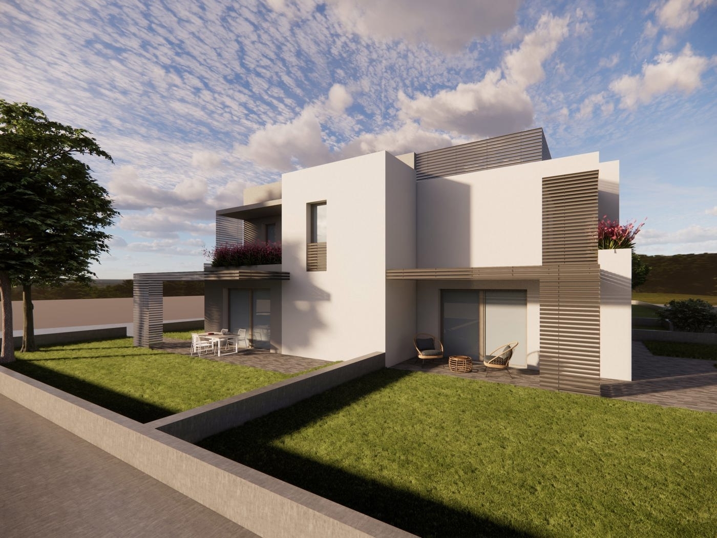 Vigodarzere. Proponiamo in vendita, cinque esclusive e moderne porzioni di villette a schiera su due livelli con giardini privati di varie metrature, immerse nel verde che al contempo godono di una posizione strategica vicina ai principali servizi e mezzi di di trasporto.le residenze garantiscono standard elevati di efficienza energetica e tecnologica, con dettagli curati e finiture di pregio. all'interno, la cucina a vista si apre sul luminoso soggiorno living, creando un ambiente accogliente e conviviale. le tre camere da letto a scalare, garantiscono spazi personali ben definiti, mentre i tre bagni offrono confort e praticità per tutta la famiglia.garage singolo collegato al piano terra con basculante motorizzato.queste soluzioni, rappresentano l'opportunità ideale per chi desidera vivere in un ambiente moderno, confortevole e tecnologicamente avanzato, in una location strategica e ben servita. inizio lavori prevista per gennaio 2026 con consegna 15 mesi.- fotovoltaico da 3 kw- infissi in pvc e tapparelle motorizzate- portoncino ingresso blindato- predisposizione vmc (ventilazione meccanica controllata)- predisposizione domotica- predisposizione antifurto- predisposizione fibra otticaprezzi:- porzione 1 ? 360.000 + iva- porzione 2 ? 340.000 + iva- porzione 4 ? 360.000 + iva- porzione 5 ? 380.000 + ivagrimaldi immobiliare via g. Franco 2/a - 35010 mejaniga di cadoneghe (pd) fisso: https://grimaldi.casa/