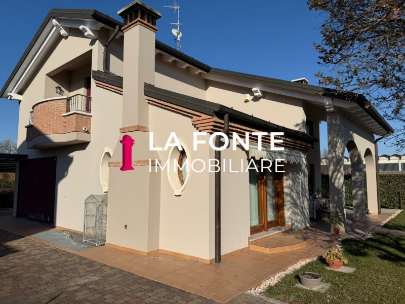 Vigonza - splendida villetta singola ideale per chi cerca spazio e comfort e perfetto per famiglie che desiderano un ambiente accogliente e raffinato.la casa si presenta con un affascinante portico d'ingresso e un ampio giardino che circonda la proprietà, offrendo uno spazio verde privato da vivere in ogni stagione. Al piano terra troverete un luminoso soggiorno dotato di caminetto e travatura a vista, una cucina/pranzo abitabile perfetta per le cene in famiglia, oltre a un bagno e a una lavanderia funzionale. Completano il piano terra un disimpegno, un garage ampio e spaziosa tettoia esterna.al primo piano sono presenti tre camere da letto generose, tra cui una padronale con bagno en suite e cabina armadio; ci sono anche due poggioli che offrono vista sul giardino circostante. Il secondo bagno serve le altre due camere ed è arredato con finiture moderne.il piano interrato ospita una taverna di circa 60 mq completa di caminetto ideale per momenti conviviali, uno studio silenzioso per lo smart working o lo studio dei ragazzi, nonché una cantina utile per riporre vini o altri beni.l'abitazione è stata costruita seguendo elevati standard qualitativi: caldaia nuova a condensazione, riscaldamento a pavimento garantisce calore uniforme durante i mesi freddi; la predisposizione dell'aria condizionata assicura freschezza nei periodi estivi; sistema d'allarme integrato offre sicurezza aggiuntiva alla vostra famiglia. Gli eleganti dettagli architettonici comprendono tetti in legno ventilati visibili nelle stanze principali mentre i pavimenti della zona giorno sono rifiniti in lastre biancone di asiago accompagnate dal caldo legno doussié nella zona notte.situata in una tranquilla area residenziale ideale per passeggiate all'aperto,vogliamo invitarvi a contattare l'agenzia la fonte immobiliare se siete interessati ad approfondire ulteriormente questa straordinaria opportunità.