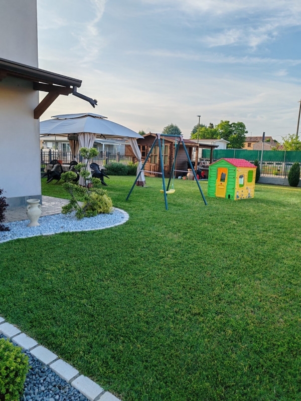 Scopri questa splendida viletta a schiera di testa situata nel cuore di giacciano con baruchella, una località tranquilla e ben servita. Questa proprietà è perfetta per chi cerca un'abitazione moderna immersa nella tranquillità.con i suoi 130 mq, la casa offre spazi ampi e luminosi. Al piano terra troverai un'accogliente entrata che si apre su un soggiorno elegante, caratterizzato da luce naturale grazie alle grandi finestre. La cucina open space è ideale per momenti conviviali con amici e familiari, creando l'atmosfera perfetta per cene indimenticabili. Completa il piano terra un bagno funzionale.salendo al primo piano, ti accoglieranno due spaziose camere da letto, ideali per garantire il giusto riposo dopo una lunga giornata; entrambe le stanze sono progettate con attenzione ai dettagli. Un secondo bagno serve comodamente le stanze del piano superiore. Presente riscaldamento a pavimento. una delle caratteristiche più affascinanti di questa proprietà è il suo bellissimo giardino privato: uno spazio all'aperto dove poter trascorrere piacevoli pomeriggi estivi o organizzare grigliate con gli amici. Il giardino rappresenta anche un'ottima area gioco sicura per i bambini. la posizione della viletta non potrebbe essere migliore: inserita in una zona residenziale recente caratterizzata da costruzioni moderne e servizi vicini come supermercati, scuole primarie e secondarie oltre ai mezzi pubblici che facilitano gli spostamenti verso le città limitrofe come rovigo e ferrara.non perdere l'opportunità di visitare questo immobile unico! contatta subito la nostra agenzia di riferimento per ulteriori informazioni o per prenotare una visita.