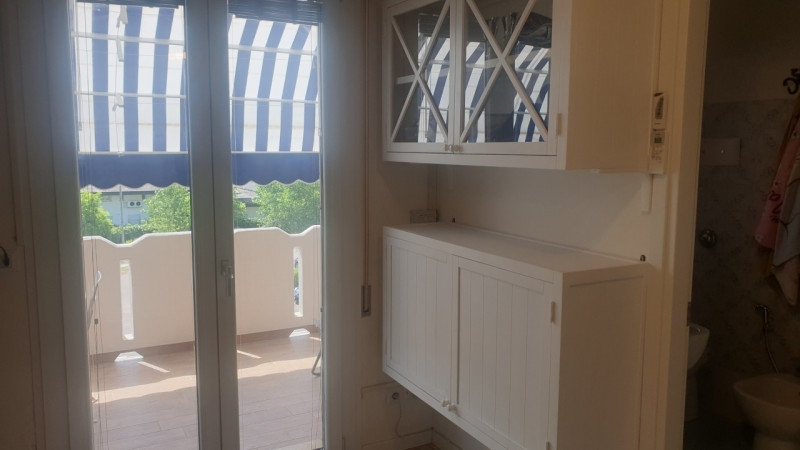 Cavallino, a due passi da lido di jesolo, vendesi monolocale di 28 mq a due passi dal mare posto al secondo e ultimo piano, esposto tutto a sud, comodo a tutti i servizi. L'appartamento è composto da un piccolo ingresso dove è stato cambiato il portone originale con uno blindato, un cucinino ad angolo, bagno completo con box doccia, letto a castello matrimoniale che ci garantisce 4 comodi posti letto creato da una parete separatoria in legno che da un vero effetto camera con televisione a muro. Aria condizionata installata. Ampio terrazzo abitabile di 15 mq con tavolo dove si può mangiare anche in 6 persone, con tende da sole motorizzate. Gli infissi sono stati cambiati e sono alta-ribalta. Zanzariere già installate. Posto auto esclusivo di proprietà. Piscina condominiale inclusa.