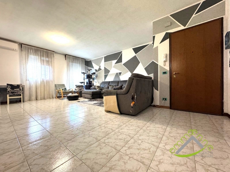 Fosso': ampio e luminoso soggiorno, di ca. 30 mq separato dalla cucina abitabile. Appartamento posto al piano secondo ed ultimo in scala di quattro unità. Dall'ampio disimpegno si accede alle tre camere da letto matrimoniali pavimentate in legno parquet, al ripostiglio e ai due bagni finestrati muniti di vasca e doccia. Il terrazzo di ca. 8,50 mq è accessibile dal soggiorno e da due stanze da letto, l'altro terrazzo è accessibile dalla cucina e dall'altra camera da letto. I serramenti sono in legno con vetrocamera, le porte interne in legno e vetro legno, il portoncino è blindato. Munito di cappotto esterno, caldaia a condensazione, tre condizionatori con pompa di calore. Viene venduto dotato di due garage con basculante motorizzato. Situato in centro paese, a pochi passi da negozi e servizi.