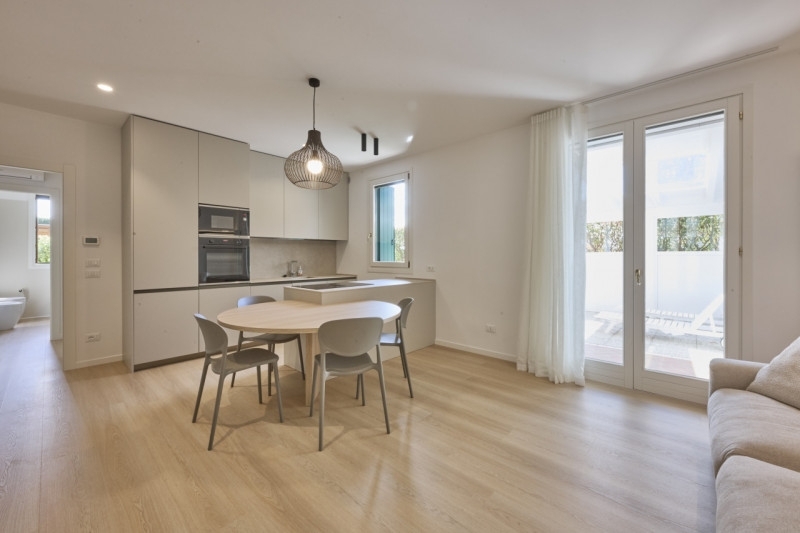 A soli 1,2 km dal mare proponiamo in vendita elegante appartamento completamente ristrutturato, situato al piano terra in un contesto tranquillo e riservato con ampio giardino.l'appartamento è composto da un accogliente soggiorno con angolo cottura, due ampie camere da letto e due bagni, offrendo spazio e funzionalità per tutta la famiglia. Gli interni sono arredati con gusto, e l'arredamento è incluso nella vendita.una soluzione ideale sia come abitazione principale sia come casa vacanze o investimento, grazie alla vicinanza al mare e ai principali servizi.completa la proprietà doppio posto auto coperto.