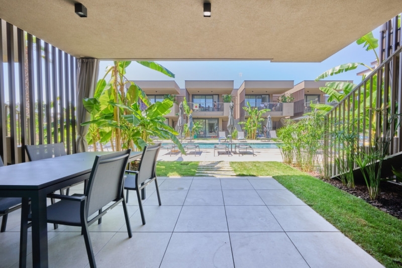 Proponiamo in vendita appartamento situato al piano terra di un residence esclusivo, posizionato alle spalle di piazza aurora.l'appartamento è composto da: soggiorno con angolo cottura, due camere da letto, due bagni e scoperto privato.completa la proprietà un posto auto scoperto.arredo non incluso
