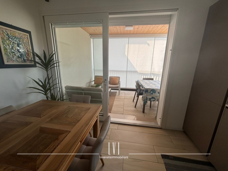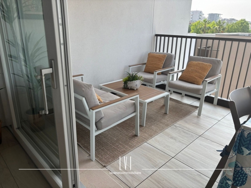 A pochi passi dal vivace cuore di piazza aurora, proponiamo in vendita un affascinante appartamento trilocale situato al secondo piano di una moderna costruzione completata nel 2021. Questa soluzione abitativa è rifinita con materiali di alta qualità e si presenta come nuova, pronta per essere vissuta.l'appartamento, distribuito su un unico livello, offre ampi spazi luminosi grazie alla sua esposizione ottimale a sud-ovest. La zona giorno accoglie un elegante soggiorno integrato con angolo cottura attrezzato su misura che garantisce funzionalità ed estetica; da qui si ha accesso diretto ad una loggia coperta perfetta per momenti di relax all'aperto, completa di salottino esterno e tavolo da pranzo.la zona notte ospita due spaziose camere da letto, ognuna dotata del proprio terrazzo privato dove poter godere della frescura delle serate estive. A disposizione degli ospiti vi è anche un bagno finestrato nella zona giorno oltre a un secondo bagno ben dimensionato che serve le camere.la proprietà viene venduta arredata con uno stile moderno e ricercato che esalta ogni ambiente dell'appartamento.il fabbricato dispone di ascensore per facilitare l'accesso ai piani superiori e include anche un garage molto grande al piano terra,senza dimenticare la splendida piscina condominiale; idealmente posizionata per il massimo comfort durante i caldi mesi estivi.situata in posizione strategica rispetto ai principali servizi quali supermercati, ristoranti e trasporti pubblici , questa casa rappresenta l'equilibrio ideale tra tranquillità e comodità: sarete infatti a breve distanza dalle spiagge della costa adriatica.non perdere l'occasione di vivere questo paradiso residenziale!contattaci subito per ulteriori informazioni o prenotare una visita!la veneta immobiliare - matteo rubino