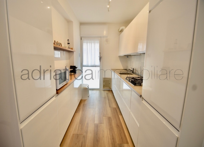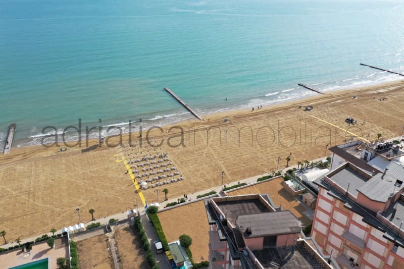 In condominio fronte mare con spiaggia privata vendiamo appartamento finemente ristrutturato sito al sesto e ultimo piano con vista mare, composto da pranzo-soggiorno, cucina separata, splendida terrazza con vista, 2 camere e un bagno. l'immobile viene venduto arredato e dispone di posto spiaggia e posto auto condominiale.