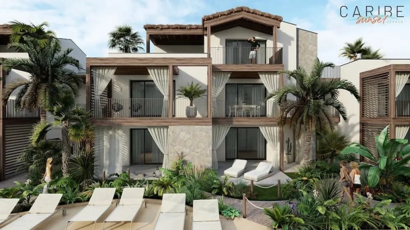 Riferimento 643:appartamento in vendita con due camere e due bagni zona piazza marina jesolo lidocaribe sunset, residence in perfetto stile caraibico situato a circa 600 metri dal mare a pochissimi passi dal parco acquatico caribe bay. La consegna è prevista per la primavera 2025.il residence è composto da quattro edifici denominati: antigua, cuba, dominica e honduras tutti i fabbricati circondano l'ampia piscina caratterizzata da sabbia bianca.l'appartamento che proponiamo in vendita si trova al piano secondo del fabbricato antigua, internamente composto da: soggiorno con angolo cottura di circa 24 mq accesso alla terrazza con vista sulla piscina, disimpegno, camera matrimoniale, bagno finestrato, vano tecnico, seconda camera da letto comoda e secondo bagno.posto auto di proprietà al piano terra, riscaldamento e raffrescamento canalizzato, fotovoltaico condominiale e serramenti in alluminio.richiesta economica 328.000,00 euro oltre imposte come per legge.per ulteriori informazioni contattaci, senza impegno, attraverso il modulo di richiesta.ti saranno inviate le informazioni richieste entro 24 ore.agenzia jesolorealestatetelefono: web: