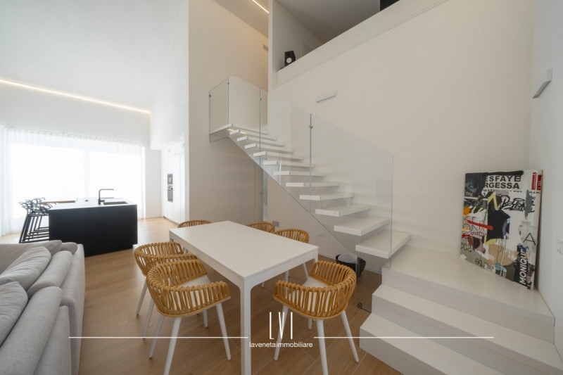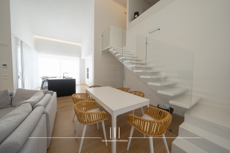In una delle zone più moderne di jesolo, a pochi passi da piazza milano, proponiamo un attico di prestigio situato al secondo e terzo piano di una moderna palazzina di sole 5 unità abitative.l'immobile si inserisce in un contesto residenziale caratterizzato da stile autentico di design moderno, estremamente comodo a scuole, negozi e a tutti i principali servizi facilmente raggiungibili a piedi.caratteristiche principali:ampia terrazza di 50 mq: un vero e proprio angolo di paradiso, perfetto per godere di momenti di relax all'aperto, con una vista piacevole sulle nuove costruzioni circostanti e una luminosità naturale che inonda l'intero appartamento.soggiorno open space: una zona living dallo stile minimal, impreziosita da una doppia altezza che crea un'atmosfera unica e suggestiva.cucina moderna e funzionale: dotata di un'isola centrale che la rende estremamente versatile e perfetta per chi ama cucinare e intrattenere gli ospiti.zona notte separata: composta da tre ampie camere matrimoniali, due bagni moderni e spaziosi, e un comodo locale lavanderia.piano superiore (terzo piano): un ampio open space di circa 70 mq, dove troviamo un ambiente luminoso con vuoto sul soggiorno sottostante, creando un collegamento visivo che esalta l'architettura dell'intero appartamento. Questo piano è già predisposto con un bagno privato e offre la possibilità di ricavare due camere aggiuntive.tecnologie e comfort:l'immobile è dotato delle migliori tecnologie per garantire un'abitazione a basso impatto energetico e massima efficienza:riscaldamento e raffreddamento a pavimento, per un comfort ottimale in tutte le stagioni.pompa di calore e impianto fotovoltaico da 6,5 kw, per ridurre al minimo i consumi energetici.ventilazione meccanica controllata (vmc), che assicura un ricambio d'aria costante e di qualità, mantenendo un clima sano e confortevole.serramenti con tripla vetrocamera in pvc, che garantiscono un eccellente isolamento termico e acustico.classe energetica a4, la massima efficienza per una vita eco-sostenibile.la proprietà è inoltre già predisposta per l'installazione di un ascensore, per una maggiore comodità.completa la proprietà un importante scoperto privato al piano terra dove troviamo due posti auto esclusivi, un ulteriore vantaggio in una zona cosù centrale.questo attico, che si sviluppa su due livelli, offre una combinazione perfetta di eleganza, funzionalità e comfort, con una vista mozzafiato sul soggiorno dal piano superiore e una posizione invidiabile a due passi dal mare. contattaci per maggiori informazioni e per prenotare una visita!matteo rubino - la veneta immobiliare - cell