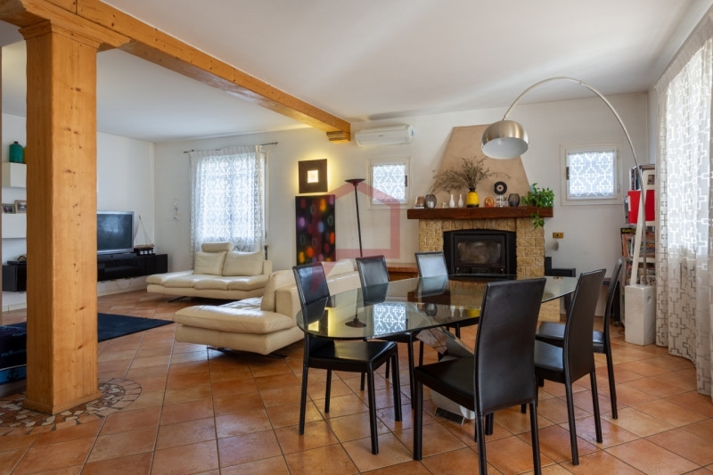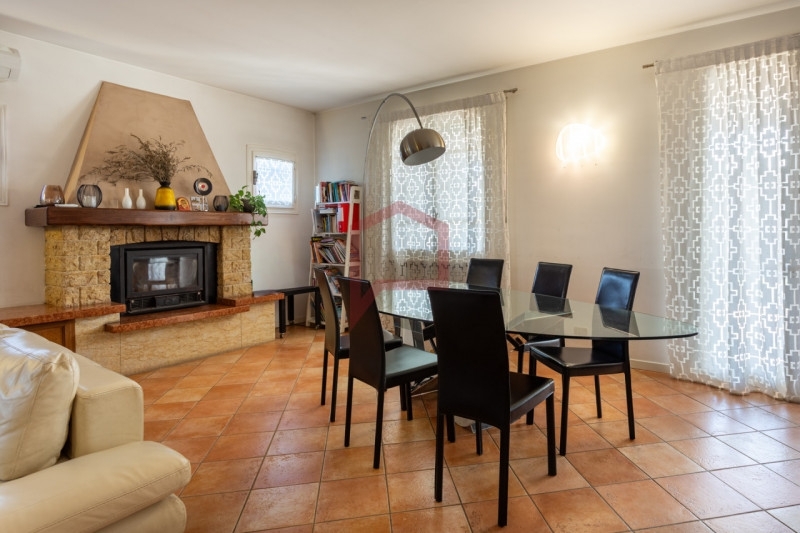 Marcon: località colmello, in tranquilla zona residenziale comoda ai principali servizi, proponiamo in vendita porzione di bifamiliare, sviluppata su tre livelli, con ampio scoperto esterno esclusivo di circa 630 mq.il piano terra è composto da ingresso a cui si accede attraverso un porticato, ampio soggiorno con caminetto a legna, cucina abitabile, disimpegno e servizio finestrato con doccia (ristrutturato nel 2020).tramite una scala interna si accede alla zona notte caratterizzata da disimpegno, due camere da letto matrimoniali entrambe con poggioli a livello, camera singola e ulteriore servizio (ristrutturato nel 2010).la pavimentazione della zona giorno è interamente in cotto, zona notte in listelli di ulivo e servizi in listoni di legno.i serramenti interni sono in legno con vetrocamera, oscuri esterni di recente ripristino e zanzariere.presenti un impianto di riscaldamento autonomo di tipo tradizionale, con sistema ibrido composto da caldaia a condensazione e pompa di calore, la climatizzazione (aria/aria) con due unità interne (soggiorno e disimpegno zona notte) e l'impianto fotovoltaico da 6,7 kwp con sisterma di accumulo avente una capacità di 14,4 kwh;completa la proprietà un generoso garage interrato di circa 42 mq., dotato di portone scorrevole motorizzato.consegna da concordare.ulteriori informazioni in agenzia.