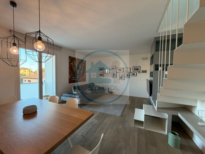 Martellago centro - esclusivo appartamento in duplex arredatonel cuore di martellago, in una posizione comoda a tutti i servizi, proponiamo un elegante appartamento in duplex situato al secondo e ultimo piano di una moderna palazzina del 2015 composta da sole sette unità. L'immobile, caratterizzato da ambienti luminosi e finiture contemporanee, si sviluppa su due livelli.al piano principale si trova una spaziosa zona giorno open space con cucina a isola, un bagno finestrato e una terrazza dotata di vano tecnico. Salendo al piano superiore si accede alla zona notte, composta da una camera matrimoniale, una camera singola, un secondo bagno finestrato e una splendida terrazza panoramica, ideale per momenti di relax.l'appartamento viene venduto completo di arredi su misura e dispone di garage di 21 mq, posto auto esterno e comfort quali tapparelle motorizzate, impianto d'allarme, aria condizionata, portoncino blindato e riscaldamento a pavimento. L'ottima esposizione nord-est e la posizione centrale rendono questa soluzione particolarmente interessante.si tratta di un'abitazione moderna, elegante e pronta per essere abitata sin da subito