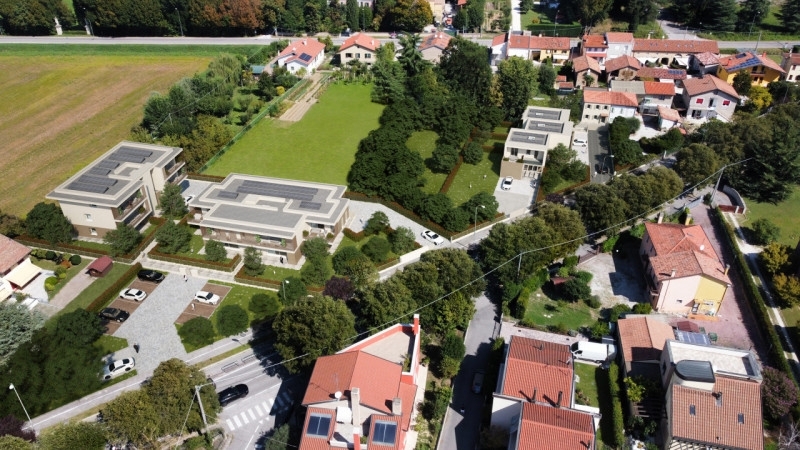 Mirano in zona comoda al centro storico vi proponiamo un intervento in corso di realizzazione, dove saranno previsti due piccoli fabbricati da 5 unità abitative ciascuno ed una trivilla. Questo cantiere è ubicato in una posizione strategica che garantisce alla nuova costruzione un ottimo accesso ai mezzi di trasporto pubblico e a tutte le principali attività commerciali.il residence ospita varie tipologie abitative tra case con accesso privato e giardino di proprietà ed appartamenti di media ed ampia metratura.la porzione di trivilla laterale è composta piano terra con un'ampia zona living soggiorno-angolo cottura, bagno, ripostiglio-lavanderia e primo piano con 3 camere, bagno, scoperto privato di oltre 370 mq. E 2 posti auto di proprietà coperti.l'intervento è stato progettato e realizzato con le caratteristiche tecniche specifiche per l'ottenimento della classe energetica a. E' stata data particolare attenzione alla capacità di generazione di energia con l'installazione di impianti fotovoltaici autonomi per ogni alloggio, sistema di ventilazione meccanica controllata, riscaldamento a pavimento ed impianto di condizionamento canalizzato (rif. Ab001).