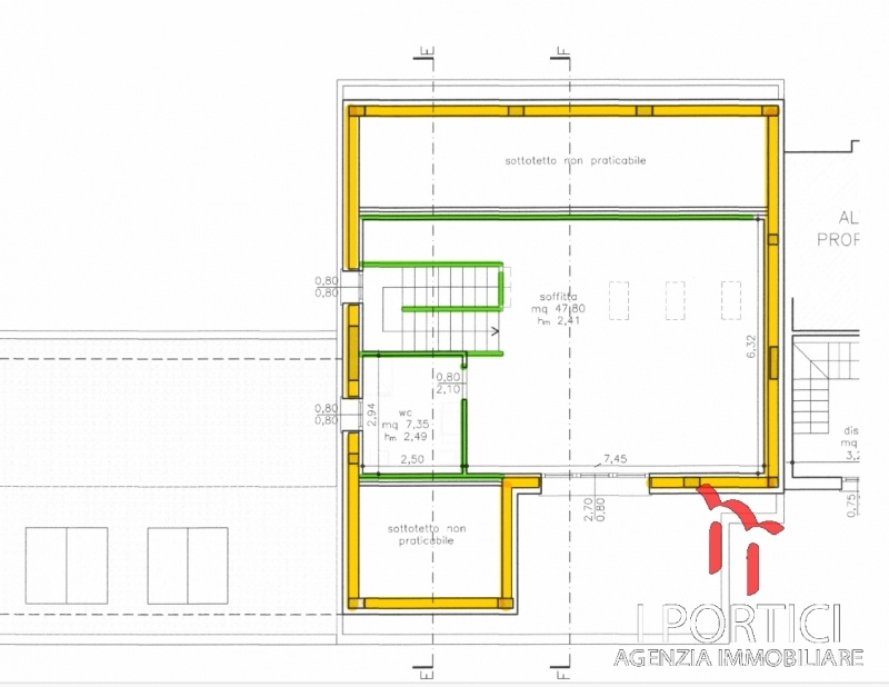 Noale, nuova porzione di trifamiliarenel comune di noale in zona periferica immersa nel verde proponiamo in vendita una nuova porzione di trifamiliare in corso di costruzione tutta su un piano con ampia soffitta di 50mq.l'immobile costruito secondo le tecniche di ultima generazione, si compone al piano terra da ingresso soggiorno e cucina abitabile con affaccio su portico, disimpegno, una camera matrimoniale, una camera singola e 1 bagno finestrato.al piano primo soffitta tutta travata vista con altezza media di 2,41 e bagno finestrato, nell'ampio spazio possono essere ricavate altre 2 stanze. nello scoperto esterno esclusivo con accesso da portico un vano tecnico di 10,85 mq. E ampio garage. l'immobile è in fase di costruzione, vi è quindi la possibilità di personalizzare le finiture nel rispetto di quanto descritto nel capitolato. metrature:- cucina 20,36 mq. - soggiorno 32,26 mq.- corridoio 3,31 mq.- camera 14,29 mq. - camera 10,08 mq.- bagno 6,67 mq. - soffitta 47,80 mq. - bagno 7,35 mq. tot. Mq. 142,12- vano tecnico 10,85- garage 19,38 mq. - portico 11,81 mq- portico 6,81 mq. - scoperto caratteristiche:- classe energetica: a3- riscaldamento a pavimento- pompa di calore- impianto fotovoltaico 8 kw - predisposizione vmc- serramenti in legno - scuri in compensato marino - predisposizione climatizzazione- predisposizione allarme rif. : 07.noa.c3 prezzo : € 350.000,00sei interessato?per ulteriori informazioni non esitare a contattarci+39 :// (ve) 30037, via cercariolo 2/aseguici anche su facebook e instagram per rimanere sempre aggiornato sulle nostre proposte.hai trovato la casa che desideravi da tanto tempo, ma hai bisogno di un mutuo per far avverare il tuo sogno? l'agenzia immobiliare i portici ti offre la consulenza di professionisti del settore che ti aiuteranno a trovare il mutuo più accessibile in base alle tue disponibilità economiche, aiutandoti ad orientarti nella scelta tra mutuo a tasso fisso, variabile o misto e ad usufruire delle agevolazioni fiscali previste. Il tutto nella massima trasparenza e professionalità.hai già un venditore o un acquirente per il tuo immobile? affidati a noi per gestire nella massima sicurezza e professionalità tutta la pratica! grazie alla nostra assistenza arriverai al rogito nella massima tranquillità, terremo noi i contatti con il notaio e con le banche per il mutuo.se invece hai un appartamento da affittare o in affitto, possiamo consigliarti le migliori opzioni di contratto e provvedere al tuo posto a tutti gli adempimenti, come registrazione e rinnovo.si intende precisare che gli indirizzi presenti negli annunci non sono identificativi dell'ubicazione precisa dell'immobile,danno un riferimento solo generico della zona al cliente che ricerca, al fine di tutelare la privacy e riservatezza del venditore.
