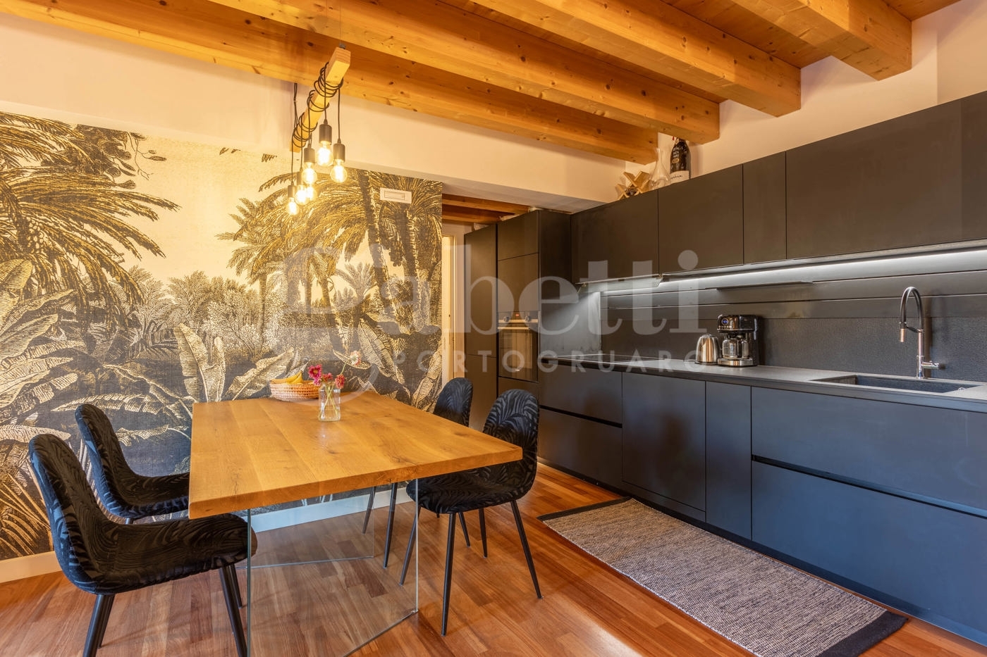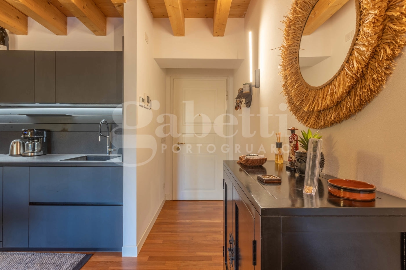 Rif. 43 portogruaro, appartamento in classe a2 ?design contemporaneo e comfort a soli due passi dal centro storico: entra nel tuo nuovo stile di vita!?all?interno del prestigioso palazzo boer, edificio di recente ristrutturazione situato a due passi dal centro storico, si trova questo splendido appartamento al secondo piano, caratterizzato da finiture signorili e da un elevato comfort energetico in classe a2.inserito in un contesto condominiale di assoluto pregio e servito da ascensore, l?appartamento accoglie con un?atmosfera calda e raffinata, grazie alle travi a vista e alle pavimentazioni in legno che donano armonia e continuità agli ambienti.la zona giorno si sviluppa in un?unica area living con moderna cucina a vista, pensata per coniugare funzionalità e stile. Una carta da parati decorativa sulla parete principale aggiunge un tocco di personalità e design contemporaneo, rendendo l?ambiente unico e ricercato.un pratico corridoio con armadi a muro ospita la lavatrice e offre spazio contenitivo aggiuntivo, senza sacrificare l?estetica. La zona notte comprende una camera singola, un bagno moderno con doccia walk-in e finiture di pregio, e una camera matrimoniale con armadi su misura, progettati per sfruttare al meglio ogni spazio.l?appartamento è dotato di impianto radiante a pavimento per riscaldamento e raffrescamento, impianto di deumidificazione, serramenti in triplo vetro con scuri e zanzariere integrate, oltre a cappotto termico esterno, garantendo un comfort ottimale in ogni stagione e consumi contenuti.l?unità viene venduta parzialmente arredata, comprensiva di cucina e bagno completo, camera matrimoniale e armadiature su misura, arredamento ricercato e di alta qualità. Completa la proprietà un ampio garage di 26 m al piano interrato ideale anche come ripostiglio.un?abitazione elegante e contemporanea, perfetta per chi desidera vivere vicino al centro storico senza rinunciare alla tranquillità, al comfort e alla qualità costruttiva di un contesto residenziale esclusivo.lasciati conquistare da questo splendido appartamento, fissa il tuo appuntamento con il nostro responsabile vendite!