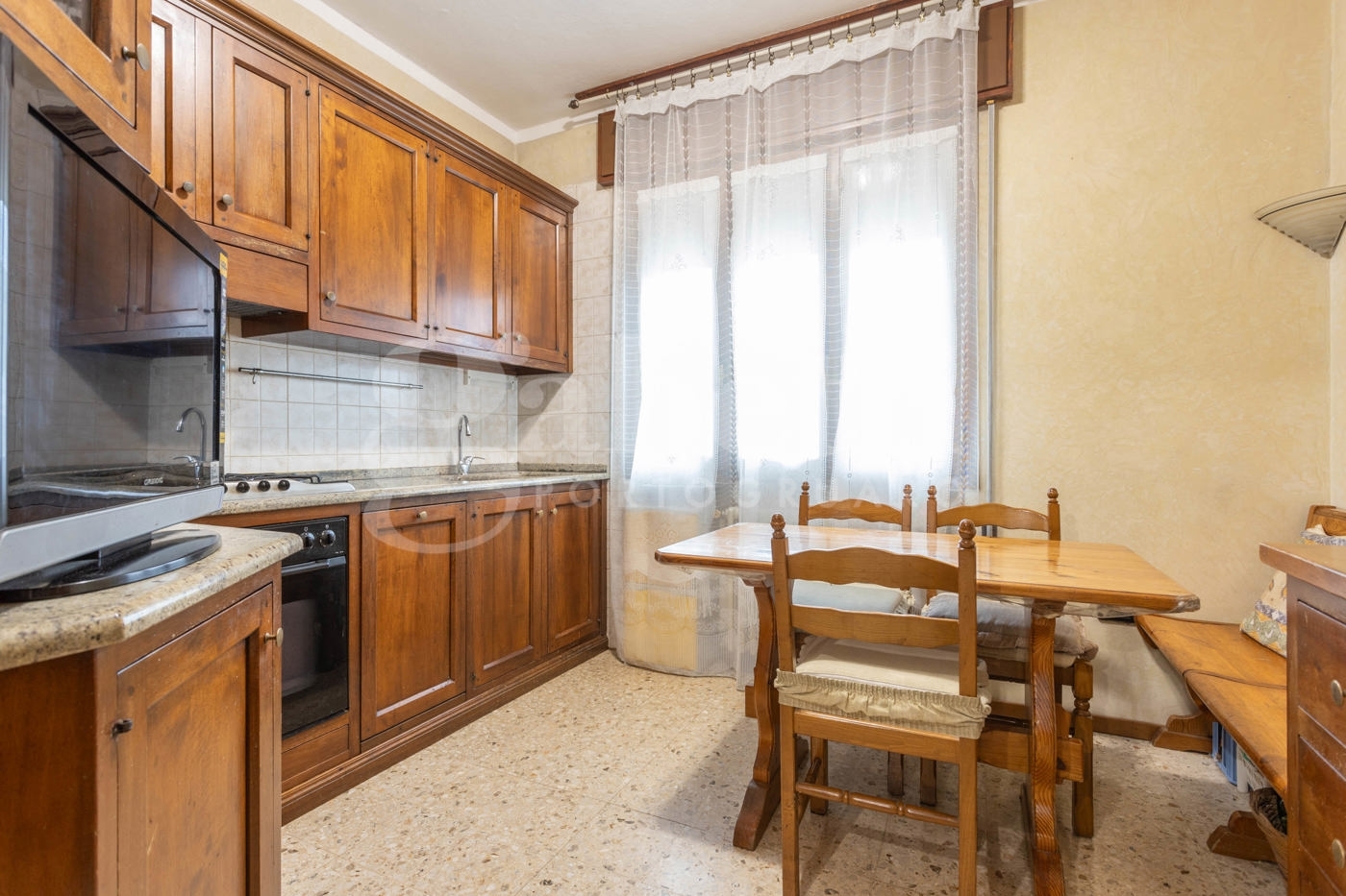 Rif. 23 appartamento spazioso con garage, cantina e ascensore a due passi dal centroin uno dei quartieri residenziali più tranquilli e apprezzati di portogruaro, a pochi passi dal centro ed inserito in un contesto condominiale con grandi spazi verdi, proponiamo in vendita esclusiva ampio appartamento al secondo piano servito da ascensore, completo di garage e cantina di proprietà.la zona è ideale per famiglie e per chi desidera vivere in un ambiente sereno, ben collegato e con tutti i principali servizi nelle vicinanze.l?unità, condotta magistralmente nel corso degli anni, si sviluppa su una generosa metratura ed è caratterizzata da ambienti ben distribuiti e ottimamente illuminati. L?ingresso si apre su un atrio, da cui si accede, sulla sinistra, alla cucina abitabile e al soggiorno singolo, dotato da ampie finestre e da doppi terrazzini, che regalano una splendida luce naturale nel corso di tutta la giornata.sulla destra dell?ingresso troviamo un comodo vano lavanderia con uscita su un ulteriore terrazzino di servizio.un secondo atrio interno suddivide in maniera funzionale la zona notte, composta da due camere matrimoniali, una camera singola attualmente adibita a studio, e un bagno finestrato con vasca.l'immobile è termoautonomo, in ottimo stato di manutenzione, dotato di impianto di climatizzazione, con infissi in doppio vetro, pronto per essere abitato fin da subito.una soluzione ideale per chi cerca comodità, spazio e tranquillità, in una posizione strategica a due passi dal cuore di portogruaro, chiama oggi stesso e prenota il tuo appuntamento con il nostro responsabile vendite!
