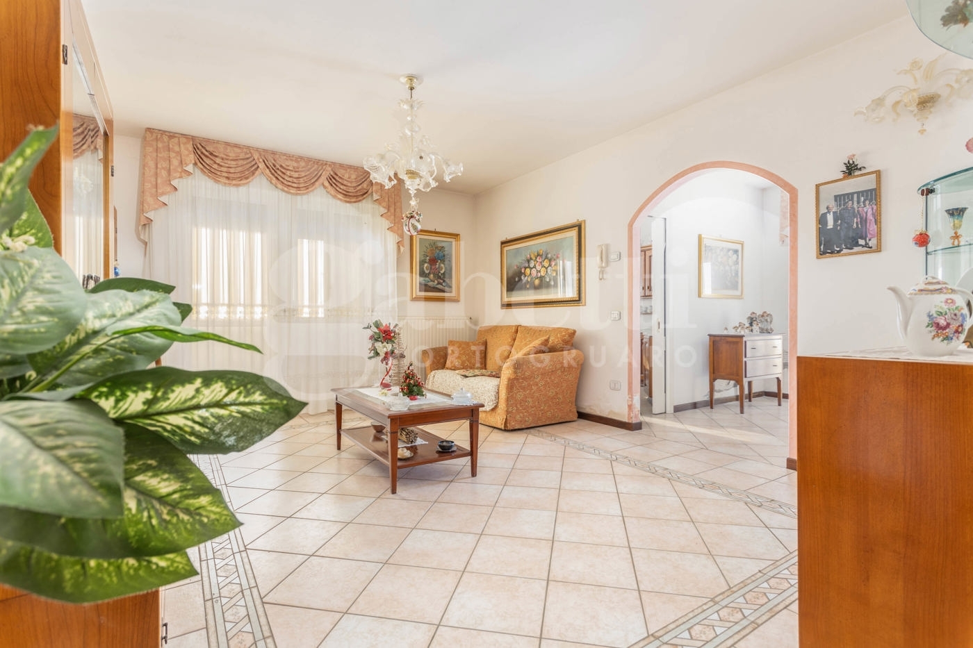 Rif. 36 a lugugnana di portogruaro, piccola frazione a pochi km dal capoluogo e a pochi minuti d?auto dalle località balneari di bibione lignano e caorle, proponiamo in vendita esclusiva, un grande appartamento all?ultimo piano di un complesso edificato nei primi anni duemila dotato di ascensore.caratterizzata da uno splendido terrazzo di circa 80 mq con affaccio ad ovest, che consente una meravigliosa vista a favor di tramonto, l?unità si compone di un ampio ingresso, una comoda cucina abitabile, il soggiorno che affaccia su un secondo terrazzo, tre grandi camere da letto tra cui una matrimoniale, una doppia ed un ultima singola, e due bagni.al piano seminterrato infine, il garage di proprietà e doppia cantina di 16 mq.