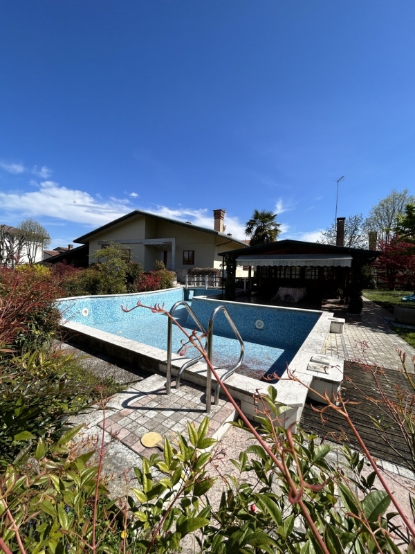 Nel centro di salzano, proponiamo in vendita una splendida villa singola immersa in un grande e curato giardino privato. L'immobile si trova in zona centrale e residenziale, ideale per chi cerca tranquillità ma desidera restare vicino a tutti i servizi principali del paese: scuole, negozi e fermate dei mezzi pubblici sono facilmente raggiungibili a piedi.la villa si sviluppa su una superficie di circa 200 mq ed è circondata da uno spazioso parco piantumato che garantisce privacy e relax all'aria aperta. Il vialetto d'ingresso lastricato conduce direttamente alla casa e al comodo portico coperto dove parcheggiare più auto o creare una piacevole area living esterna. La struttura della villa è caratterizzata da linee architettoniche moderne con tetto spiovente, grandi finestre luminose con dettagli raffinati che conferiscono eleganza all'abitazione.gli spazi interni risultano ariosi grazie alle generose metrature; la distribuzione interna può accogliere comodamente famiglie numerose oppure essere personalizzata secondo le proprie esigenze abitative. Completa la proprietà una dependance con cucina e caminetto.la piscina esterna denota l'esclusività di questa proprietà.un'opportunità unica per vivere nella quiete senza rinunciare ai comfort cittadini. Contatta subito la nostra agenzia per fissare un appuntamento e visitare questa esclusiva soluzione abitativa!
