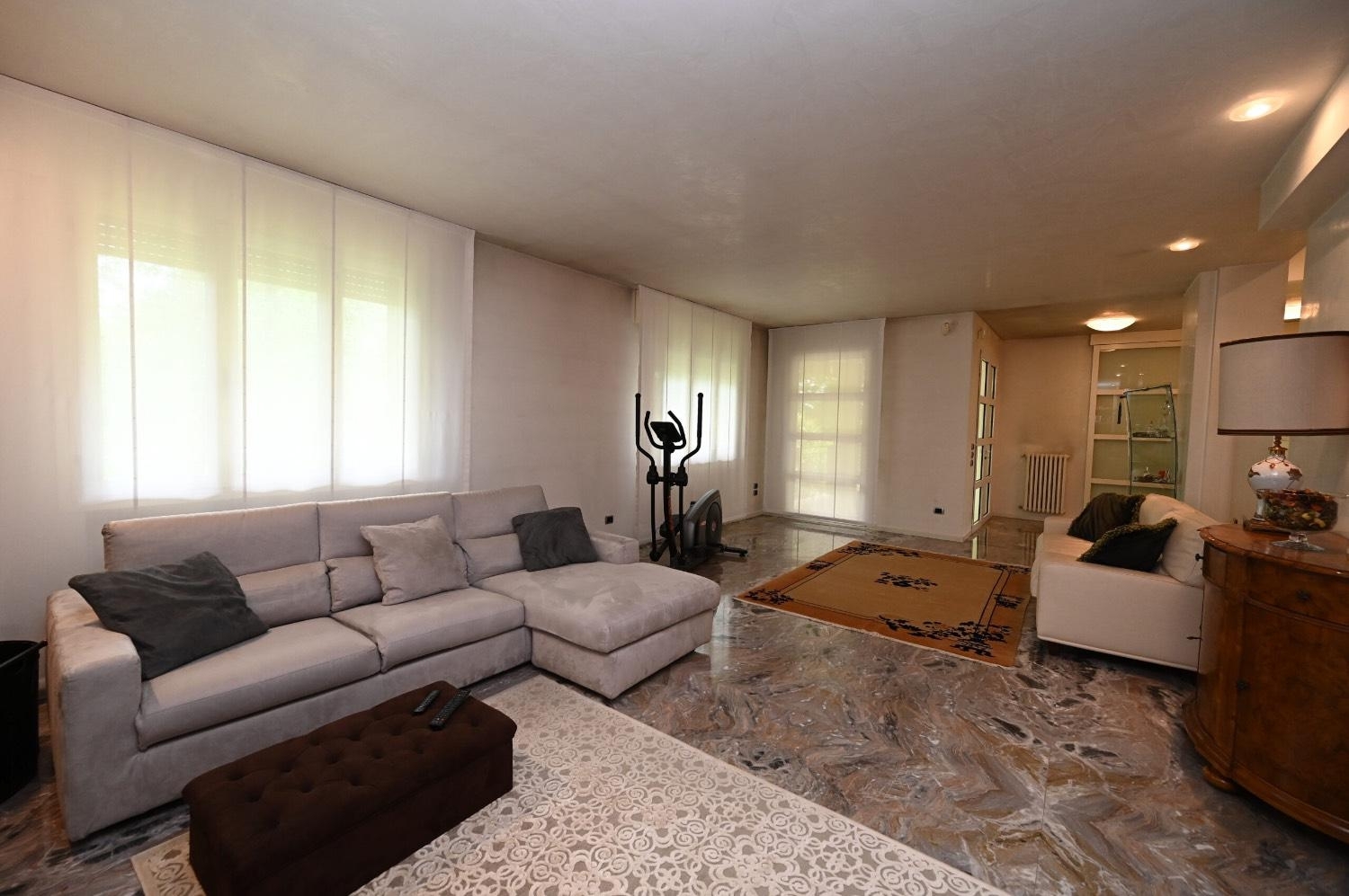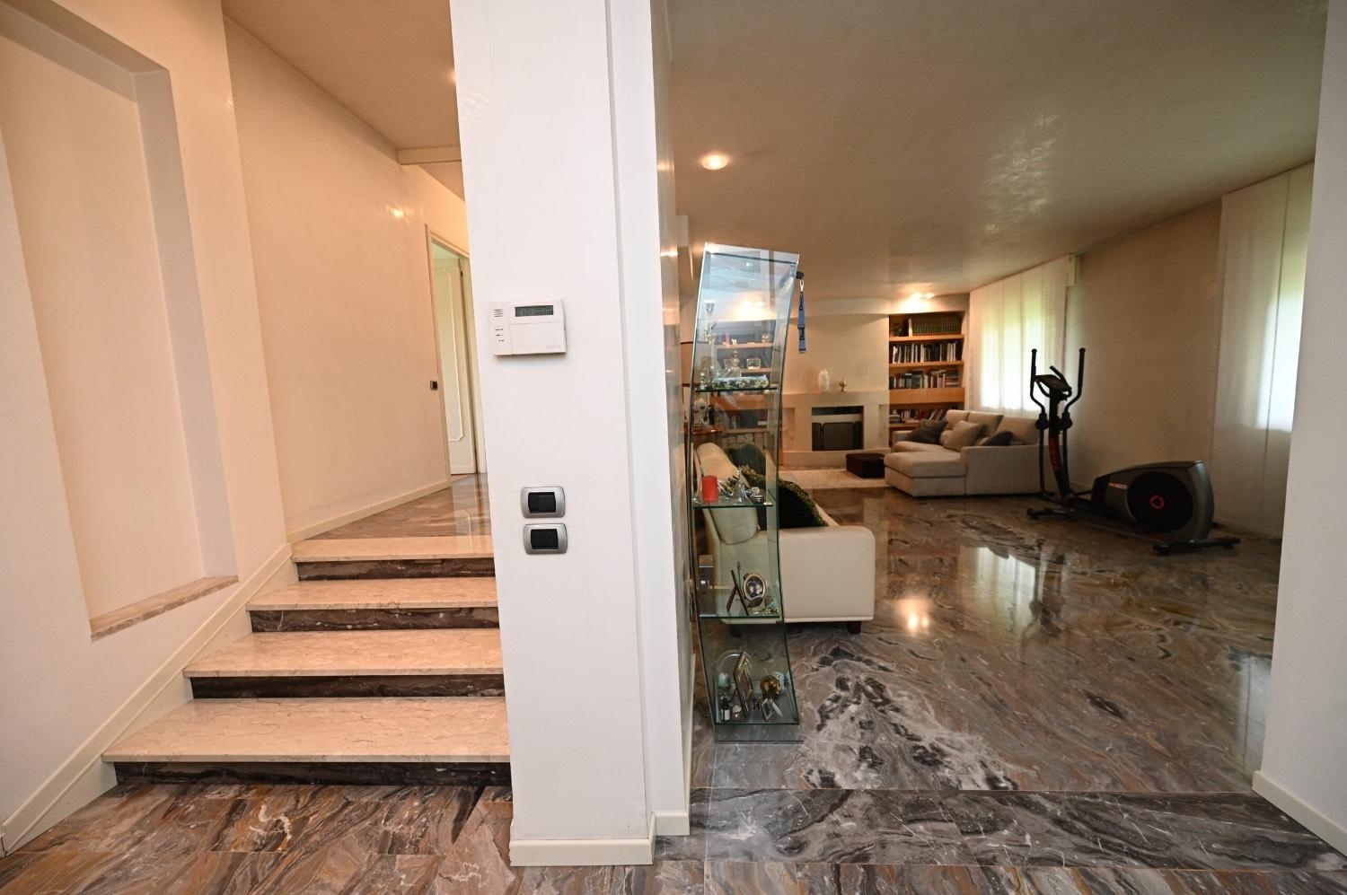 Questa villa singola, distribuita su due livelli, offre un?abitazione spaziosa e raffinata immersa in un ampio giardino piantumato con alberi secolari, ideale per chi cerca un connubio tra eleganza e funzionalità. Situtata in una prestigiosa zona residenziale, la proprietà si estende su una superficie complessiva di 630 mq, di cui 390 mq destinati all?abitazione principale, inoltre dispone anche di uffici e ampi magazzini utili a depositi per chi ha un?attività.al piano terra troviamo un ingresso accogliente e spazioso con ampio salone con cucina, servizio e una spaziosa lavanderia, una stanza guardaroba ben organizzata e un ripostiglio. Un garage doppio garantisce ampio spazio per parcheggiare comodamente due automobili inoltre ampio portico con sei posti auto accatastato come garage, un magazzino di grandi dimensioni offre abbondante spazio per lo stoccaggio. All?esterno, un accogliente patio si affaccia sul rigoglioso giardino, creando un ambiente perfetto per momenti di relax all?aria aperta.salendo le scale si accede al primo piano dove abbiamo un ampio ingresso che distribuisce la zona giorno in due parti con accesso ad un ampia terrazza abitabile, un pratico wc per gli ospiti si trova nelle vicinanze.: la meravigliosa terrazza di 70 mq, che si affaccia sul parco circostante, rappresenta un ulteriore spazio di svago e contemplazione, perfetto per godere delle belle giornate. La zona cucina e pranzo, di 50 mq, si distingue per la sua luminosità e spaziosità, rendendola il cuore pulsante della casa, perfetto per ospitare cene e riunioni familiari, salone doppio con caminetto. la zona notte, raggiungibile con pochi scalini, è composta da tre camere matrimoniali che offrono un rifugio di tranquillità, accompagnate da due bagni finestrati dotati di finiture di pregio.la villa è caratterizzata da finiture di alta qualità, come i bagni in mosaico di bisazza, gli infissi in legno con vetrocamera e un sofisticato impianto di allarme, che garantiscono sicurezza e comfort, le pareti hanno finiture in marmorino/spatolato veneziano. Ogni dettaglio è stato curato con attenzione, rendendo questa proprietà un?opportunità unica per chi desidera vivere in un ambiente esclusivo e raffinato con la comodità di una sede lavorativa.per ulteriori informazioni chiamare , maria cristina zardo.