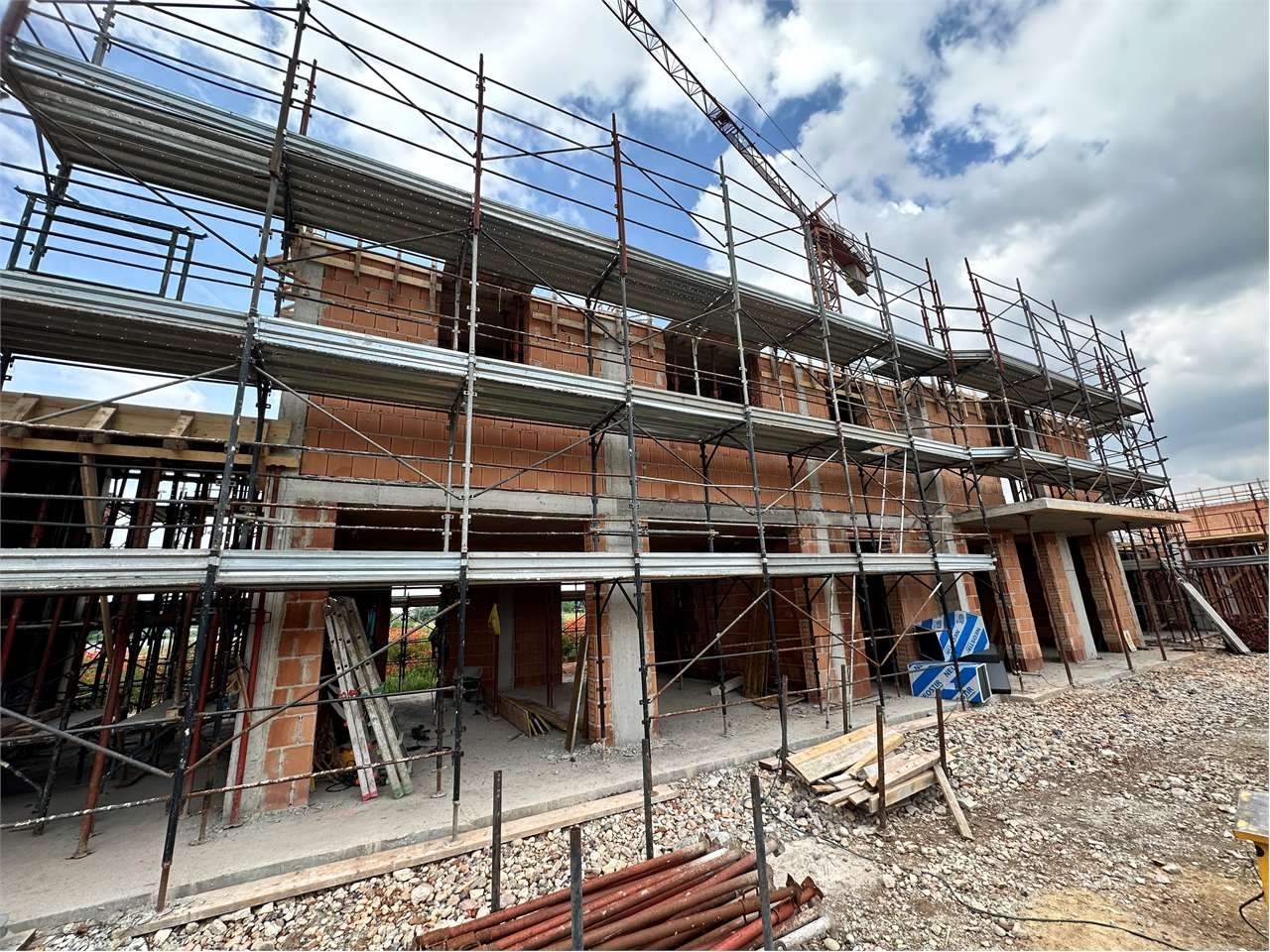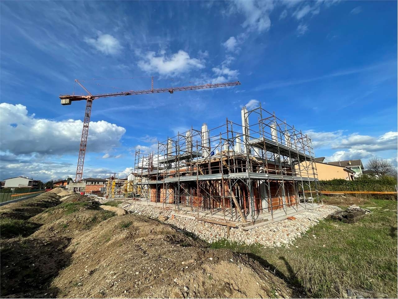 In fase di costruzione appartamento in quadrifamiliare posto al piano primo ; ingresso, soggiorno con angolo cottura, camera matrimoniale , due camere singole, bagno e balcone di 17 mq e terrazzo di circa 36 mq. Al piano terra garage singolo. Posto auto scoperto e piccola area di proprietà di circa 10 mq.in classe energetica a3/a4, sarà antisismico con un'attenzione al risparmio energetico. Tutto questo grazie alle seguenti caratteristiche:- isolamento a cappotto ad alta densità e una conseguente notevole coibentazione termoacustica- impianto di riscaldamento e raffrescamento con sistema innovativo a riscaldamento e condizionamenti autonomi in pompa di calore con un'unica macchina posizionata all'esterno dell'unità abitativa per alimentare sia il sistema di riscaldamento autonomo a pavimento che il sistema di climatizzazione.- i serramenti saranno in pvc in vetro camera, doppia battuta e tripla guarnizione termica e acustica- l'impianto fotovoltaico sarà autonomo per ogni unita' abitativa installato per garantire la produzione di energia elettrica .grazie allo studio d' architettura interno, ci sarà la possibilità di personalizzare la distribuzione degli spazi interni per creare ambienti armoniosi ed equilibrati per le esigenze di ciascun cliente, a garanzia del benessere abitativo; i dettagli e le finiture interne verranno definite e scelte insieme all'acquirente grazie ad un ottimo capitolato che permetterà di trasformare ogni unità nella propria casa.nel prezzo è compreso il garage.per la visione dei progetti, del capitolato o per poter fissare un incontro potete contattarci al numero oppure scrivere una mail a .classe energetica:
