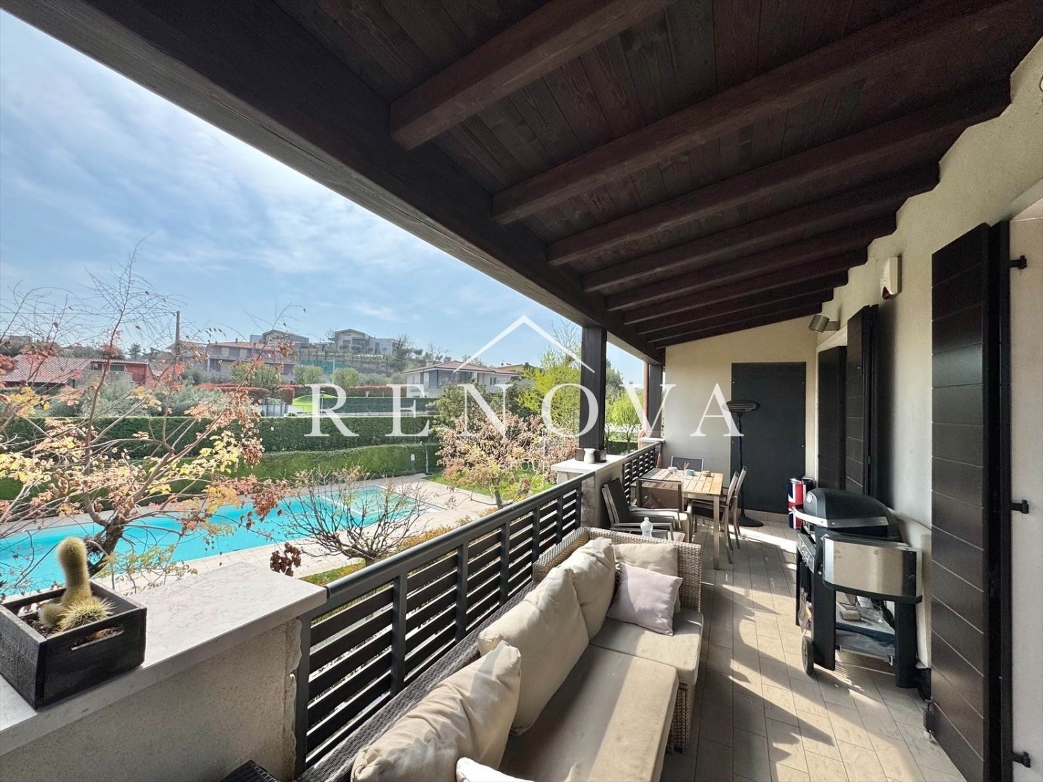 In un raffinato contesto residenziale di recente costruzione, immerso nel verde e curato in ogni dettaglio, proponiamo in vendita un elegante appartamento trilocale situato al primo piano e sviluppato interamente su un unico livello.l'ingresso si apre su una luminosa zona giorno open space, dove soggiorno e cucina convivono in un ambiente moderno e accogliente, valorizzato dall'accesso diretto ad una splendida terrazza abitabile coperta di circa 30 mq, uno spazio ideale per pranzi all'aperto, momenti di relax o convivialità in totale privacy. La zona notte è composta da una confortevole camera matrimoniale, una seconda camera singola e un bagno finestrato dotato di box doccia.l'immobile si distingue per le finiture di qualità e per l'elevato livello di comfort abitativo, grazie agli infissi in legno con triplo vetro, al riscaldamento a pavimento alimentato da pompa di calore, all'aria condizionata presente in ogni ambiente, oltre alla presenza di pannelli solari e fotovoltaici. Completano la dotazione un impianto d'allarme e un sistema domotico che garantiscono sicurezza e praticità nella gestione della casa.il residence, di recente realizzazione e mantenuto in condizioni impeccabili, offre servizi esclusivi tra cui una piscina immersa nel verde condominiale e una completa area wellness con spa, jacuzzi, solarium, zona relax, palestra attrezzata con spogliatoi, sauna, bagno turco e docce con cromoterapia, pensati per offrire un'esperienza di benessere quotidiano.è inoltre disponibile, con acquisto separato, un garage singolo di generose dimensioni al piano interrato.soluzione ideale per chi desidera vivere in un ambiente moderno, efficiente e dotato di tutti i comfort, senza rinunciare alla tranquillità e ai servizi di alto livello.prezzo richiesto: eu. 390.000.00classe energetica: briferimento: 018 classe energetica: b