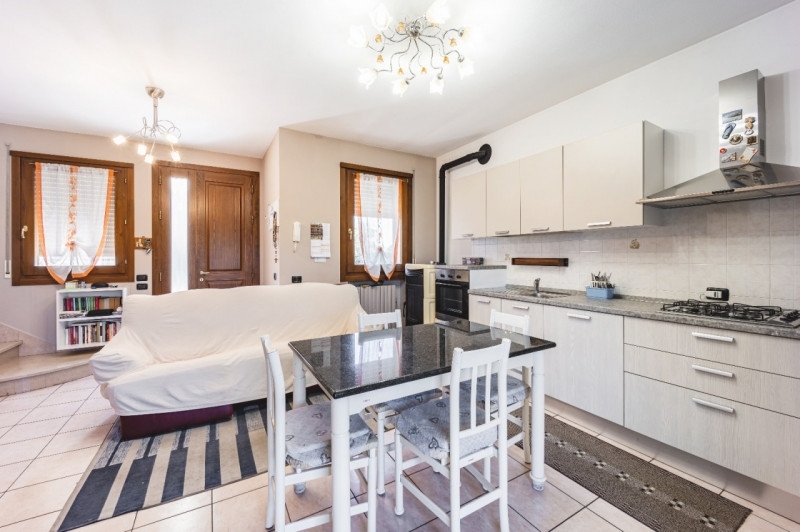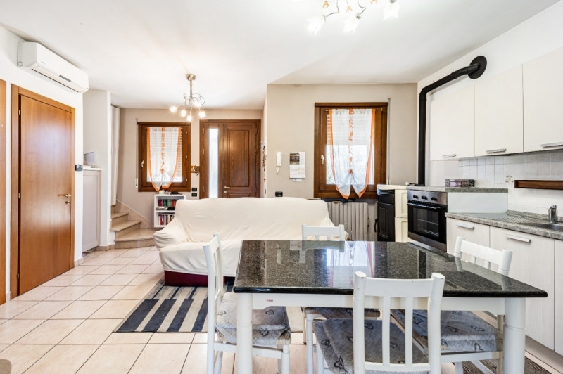 In localita' sule, in contesto tranquillo, proponiamo porzione di bifamiliare posta su 2 livelli fuori terra e piano interrato. L'immobile si compone di ingresso su soggiorno cucina in open space e bagno al piano terra; al primo piano 2 camere da letto con bagno; al piano interrato ampia taverna, lavanderia con locale caldaia e garage con doppio posto auto. Esternamente giardino e un posto auto scoperto di proprieta' esclusiva. Dotato di impianto di climatizzazione.