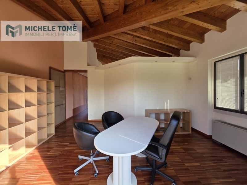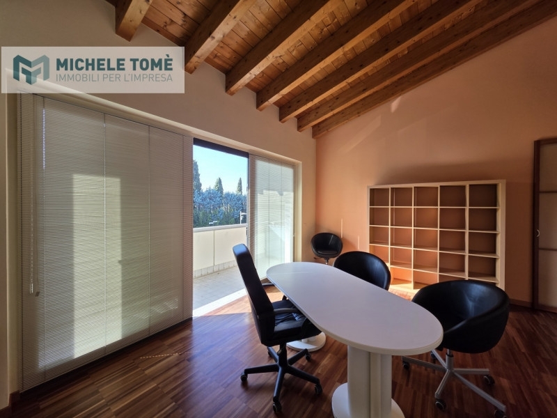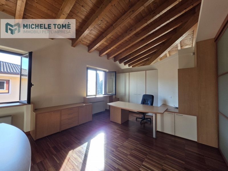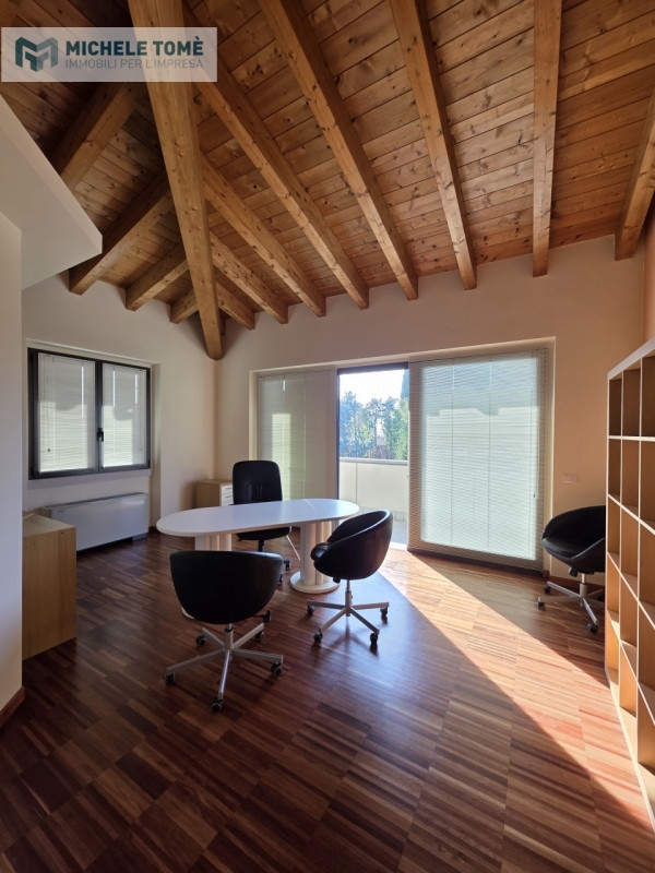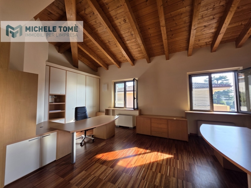 All'interno di un signorile contesto direzionale situato in posizione strategica a lazise, ufficio di circa 80 mq posto al primo piano, completamente arredato con mobilio su misura di alta qualità.l'unità immobiliare si distingue per l'architettura interna ricercata, caratterizzata da alti soffitti con travi in legno a vista e ampie superfici vetrate che garantiscono un ambiente di lavoro stimolante e di alta rappresentanza.distribuzione degli spazi:l'ufficio, ottimamente rifinito, si compone di:ingresso funzionale con possibilità di zona accoglienza/reception;primo locale operativo di ampie dimensioni con due postazioni direzionali;secondo locale direzionale spazioso e riservato, ideale anche come sala riunioni;balcone privato con affaccio fronte strada, che garantisce ottima visibilità e luminosità;servizio igienico dedicato.caratteristiche tecniche:l'immobile è stato progettato per garantire il massimo comfort ed è dotato di:impianto di riscaldamento autonomo;sistema di condizionamento indipendente in ogni ambiente;impianto di allarme volumetrico e porta blindata;pavimentazione in parquet industriale ad alta resistenza;infissi ad alto isolamento termico e acustico.ubicazione:la soluzione si presenta in perfetto stato manutentivo, pronta per essere occupata. La posizione garantisce facilità di accesso e comodità di parcheggio nelle immediate vicinanze, rendendola ideale per studi professionali o società che necessitano di una sede di prestigio nel territorio del lago di garda.il prezzo indicato è inteso al mese.