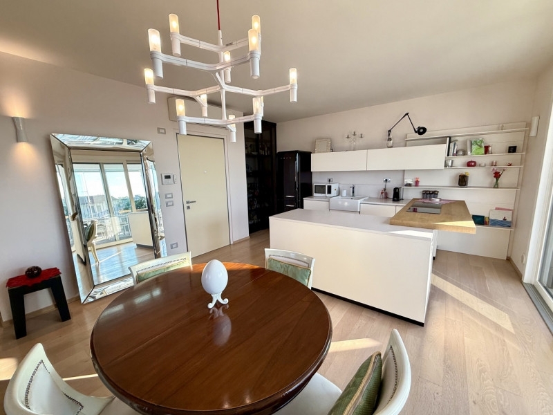 Legnago, in zona centralissima del paese, attico di pregio con garage doppio e cantina.l'immobile si trova al quinto e ultimo piano con unico accesso sul pianerottolo tramite ascensore, è l'unico al piano di una moderna palazzina costruita nel 2018 dalla ditta osanni, che vanta tutti i più elevati standard di edilizia attuali, per garantire la massima prestazione energetica in classe a3, con un impianto che copre tutti i consumi.l'appartamento è di circa 150 mq, si apre su una zona living con un'ottima luce naturale, composta dalla cucina con isola a vista, un comodo soggiorno, dotato di doppio balcone, sala da pranzo e una terrazza di circa 30 mq, con pavimentazione in tek ideale per organizzare cene e aperitivi durante la bella stagione. proseguendo nel reparto notte suddiviso dalla zona giorno con una porta in vetro, un corridoio ci porta nelle camere da letto e nei bagni, la prima stanza che troviamo è la cabina armadio, ideale per riporre vestiti, borse e scarpe, poi c'è un pratico ripostiglio e più avanti troviamo la prima camera singola, poi una seconda camera doppia, e la camera padronale in fondo, ognuna dotata di balcone; completano la zona notte due bagni entrambi finestrati, uno completo di vasca, sanitari, l'altro con piatto doccia doppio, e rispettivi sanitari, e angolo lavanderia con lavatrice e asciugatrice.l'attico vanta finiture di prestigio, quali un parquet in rovere chiaro di listone giordano lungo tutta l'abitazione, impianto di domotica, tende motorizzate e oscuranti, anche in terrazza, impianto di raffrescamento in ogni stanza, e viene venduto completo degli arredi su misura, quali la cucina mesos, vetrina dispensa, di impianto di illuminazione finito con marchi come flos e artemide, bagni completi di lupi. Compreso nel prezzo anche il garage doppio al piano seminterrato con basculante motorizzata e un'ampia cantina di circa 7 mq.