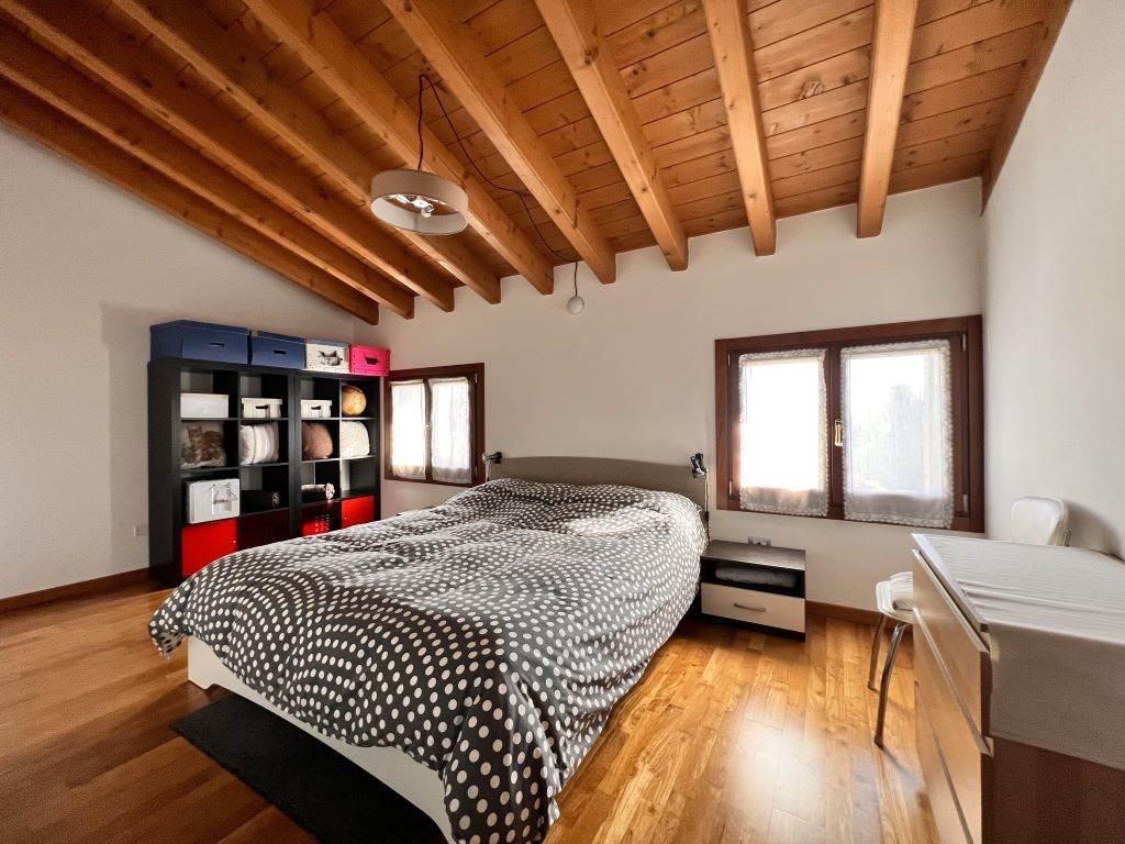 In esclusiva proponiamo in vendita a villafranca di verona, un elegante appartamento di 121 mq su un' unico livello, situato su tutto il secondo e ultimo piano di un contesto residenziale ben curato, la scala e' solo per 2 famiglie. L'immobile offre un'ottima distribuzione degli spazi in quanto troviamo un ampio soggiorno, cucina abitabile, due camere matrimoniali, due bagni uno con vasca e uno con doccia, due ampi ripostigli e uno studio finestrato con possibilità di renderlo cameretta. le condizioni interne sono ottime, vi è il riscaldamento a pavimento, che assicura un comfort termico ideale nei mesi invernali e la presenza di 2 condizionatori per i mesi estivi. Completano la proprietà un box/garage al piano seminterrato e un posto auto al piano terra, offrendo cosù soluzioni pratiche per la gestione dei veicoli.la posizione strategica vicino ai servizi e alle principali vie di comunicazione. Non perdere l'occasione di visitarlo!possibilita' di acquistare l'intero arredamento. Classe energetica: d epi: 109,79 kwh/m2 anno