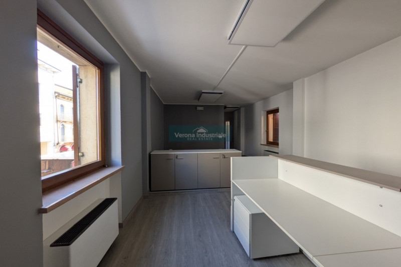 Proponiamo in affitto uno spazioso ufficio di circa 80 mq situato nel cuore del centro storico di villafranca di verona, una posizione strategica per chi desidera lavorare a pochi passi dai principali servizi, negozi e attività commerciali. L'immobile si trova al piano primo ed è caratterizzato da ambienti moderni appena ristrutturati con finiture contemporanee: pavimenti effetto legno chiaro che donano calore agli spazi, pareti tinteggiate nei toni neutri ideali per ogni tipo di arredo professionale e grandi finestre che garantiscono ottima luminosità naturale durante tutto il giorno.l'ufficio si compone di più vani funzionali ben separati tra loro, perfetti sia come open space operativo sia come studi privati o sale riunioni. Gli infissi assicurano comfort acustico e termico; l'impianto elettrico è recente cosù come quello d'illuminazione con plafoniere led ad alta efficienza energetica. Sono presenti due bagni.le spese condominiali sono estremamente contenute, rendendo questa soluzione ideale anche dal punto di vista gestionale. La zona centrale offre inoltre facilità di parcheggio pubblico nelle immediate vicinanze oltre alla comodità dei mezzi pubblici collegati alle principali arterie stradali della provincia veronese.